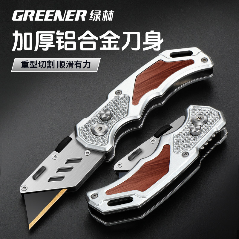 Универсальный нож из нержавеющей стали Green Forest Сверхмощный полностью стальной утолщенный нож для обоев Складной держатель ножа Прочный нож с крюком для электрика промышленного класса