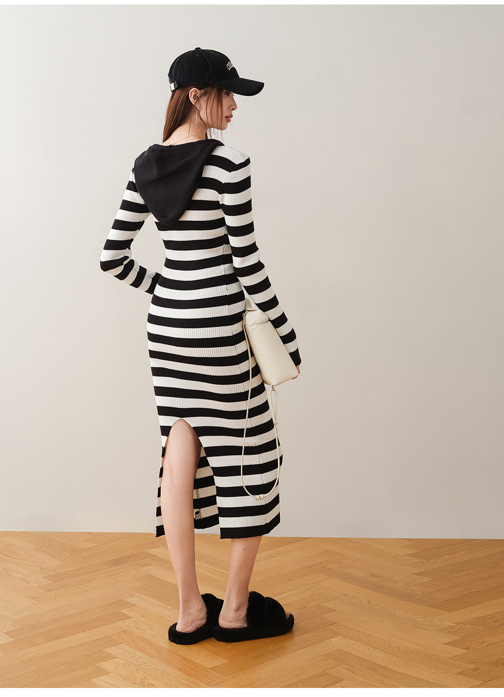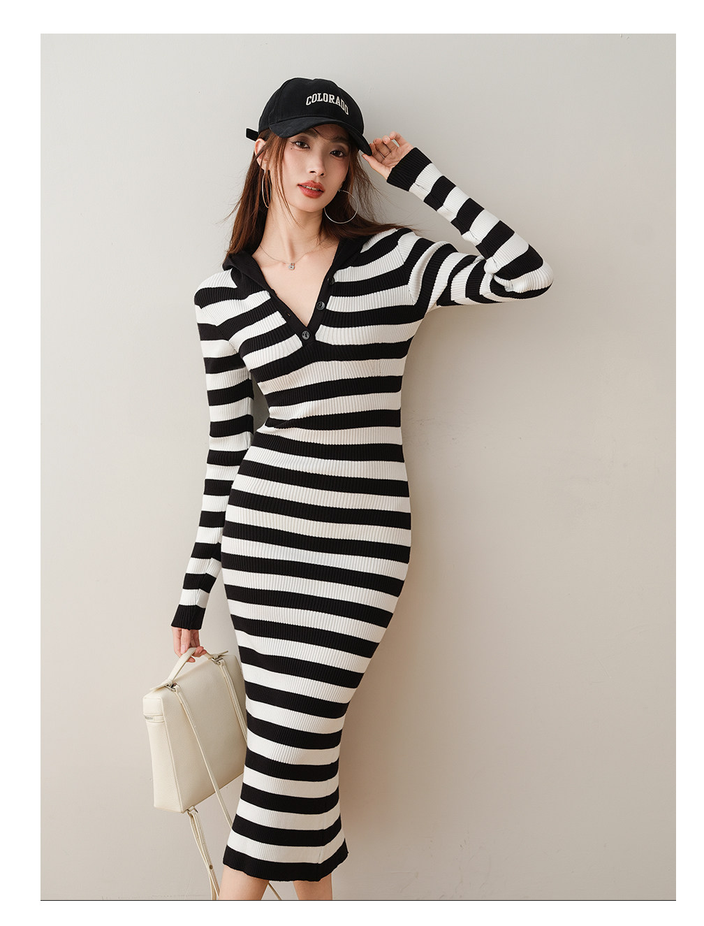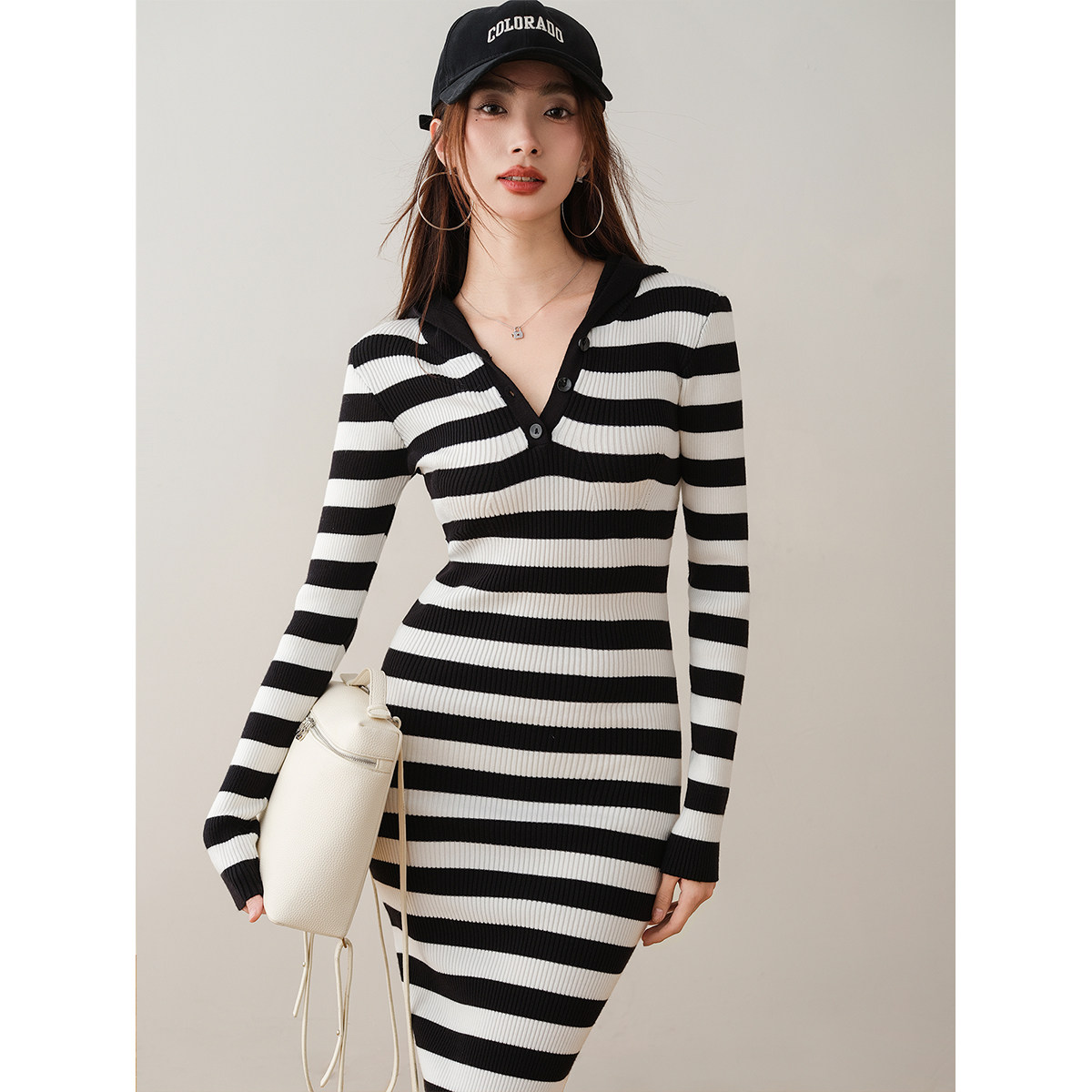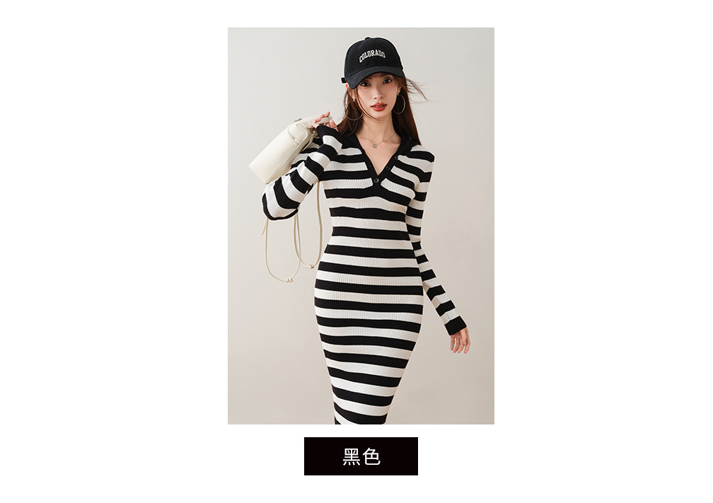 ron&ron Полосатая тонкая вязаная юбка с дикой капюшоном 2024 Осень и зимняя сумка с темпераментом.