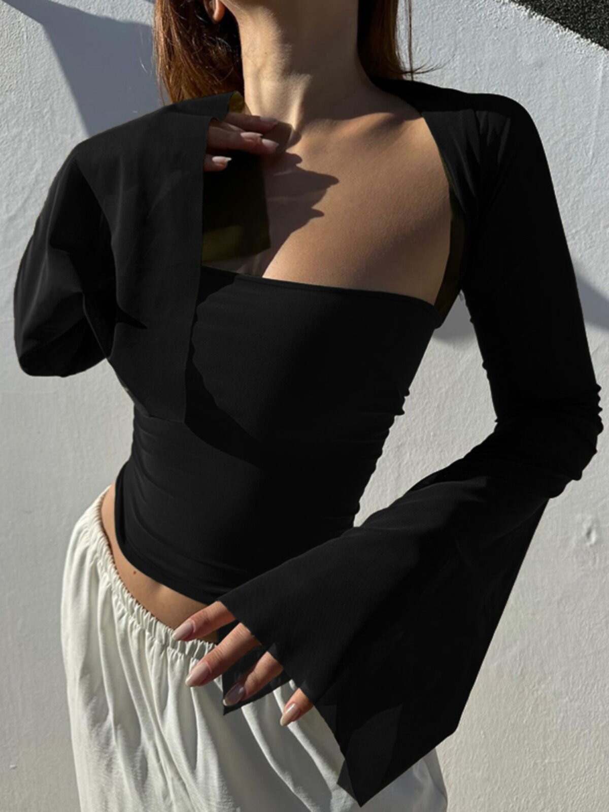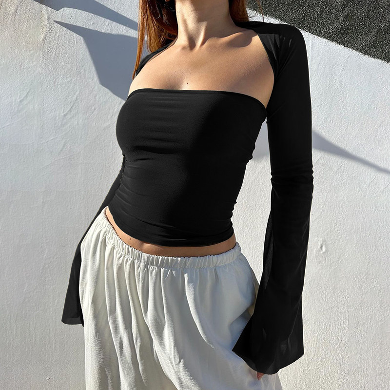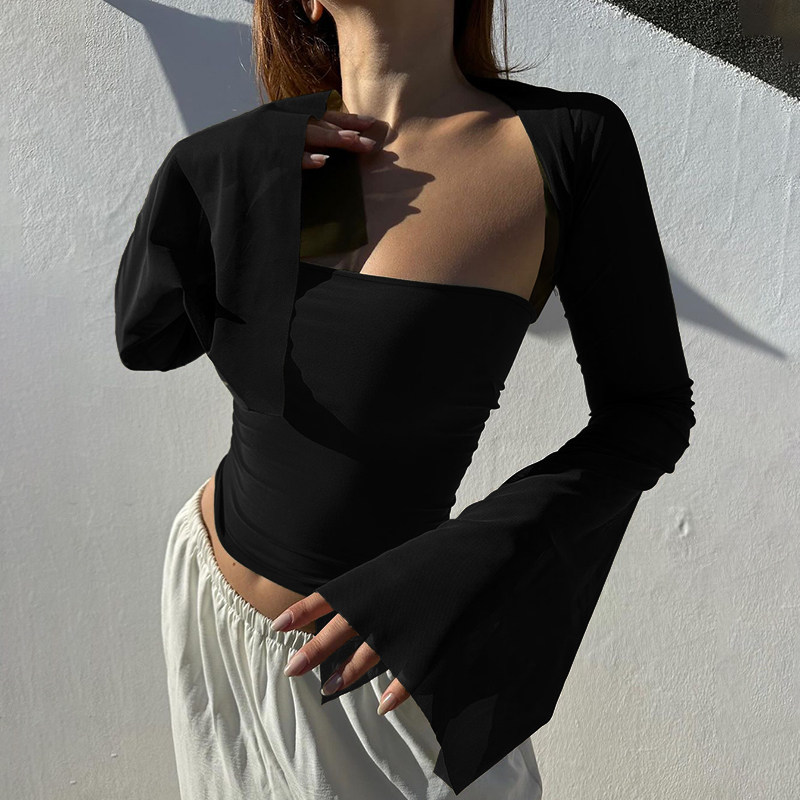 Черный сексуальный базовый осенний приятный телу лонгслив, квадратный вырез