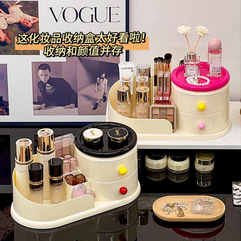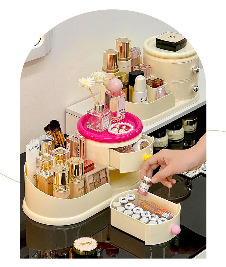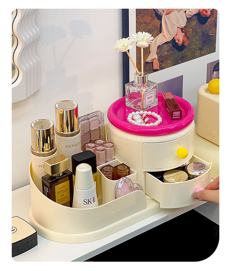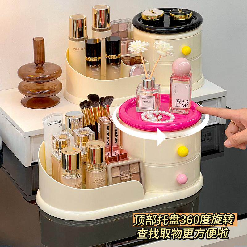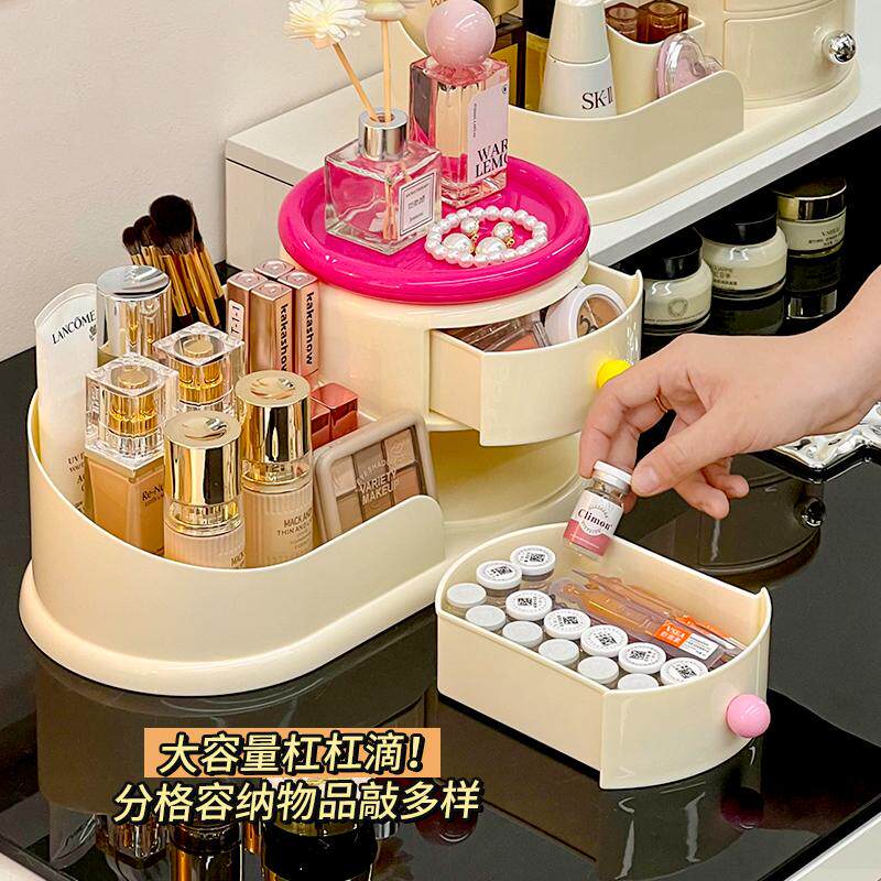 Крутящаяся кремовая косметическая настольная коробка для хранения, туалетный столик, кисть для ухода за кожей, система хранения