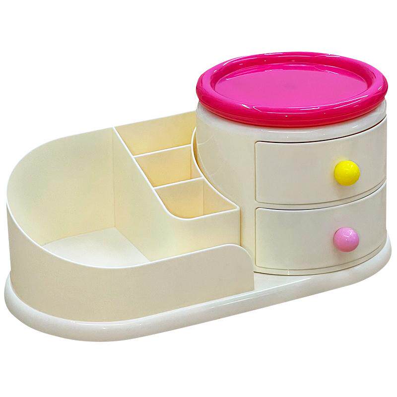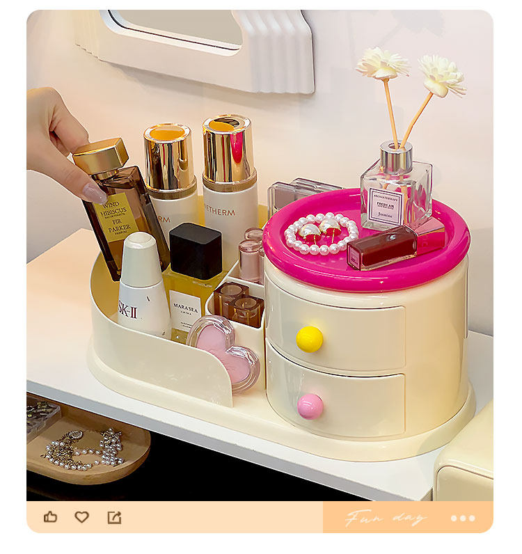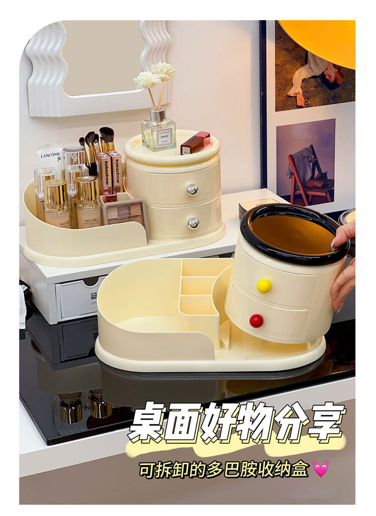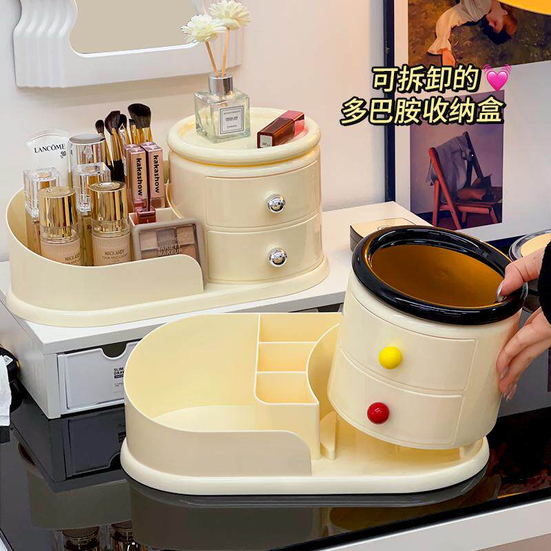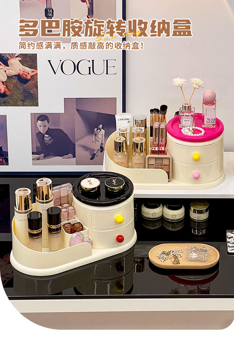 Крутящаяся кремовая косметическая настольная коробка для хранения, туалетный столик, кисть для ухода за кожей, система хранения