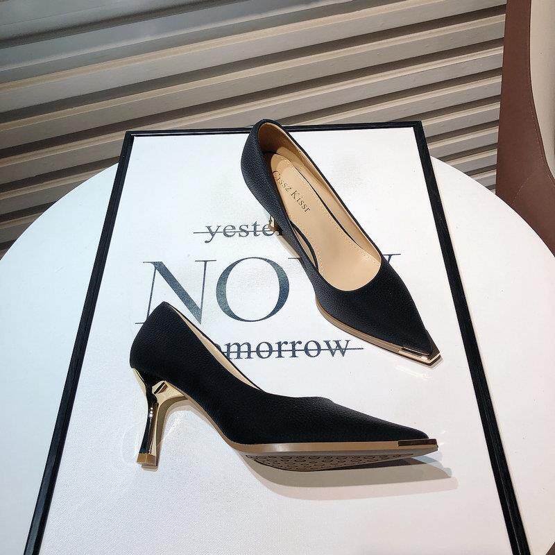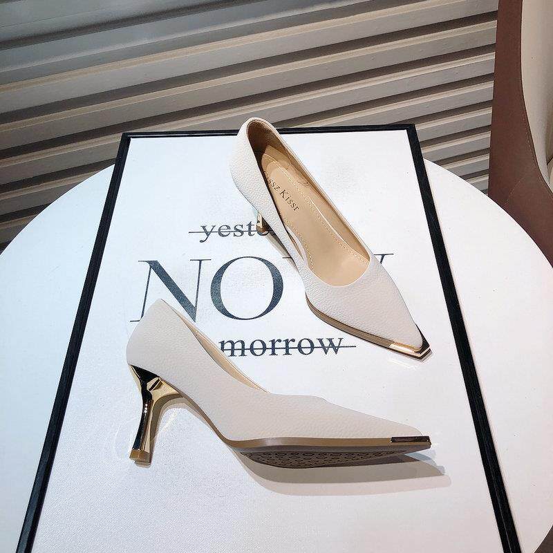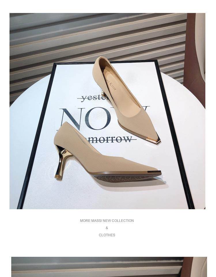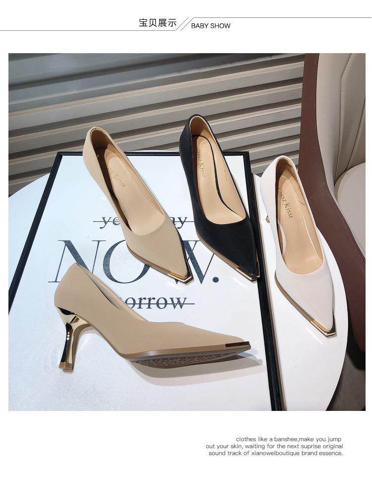 Весенние модные туфли на высоком каблуке, металлическое платье с заостренным носом с низким вырезом, французский стиль, тренд сезона