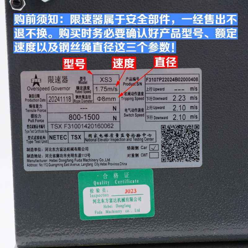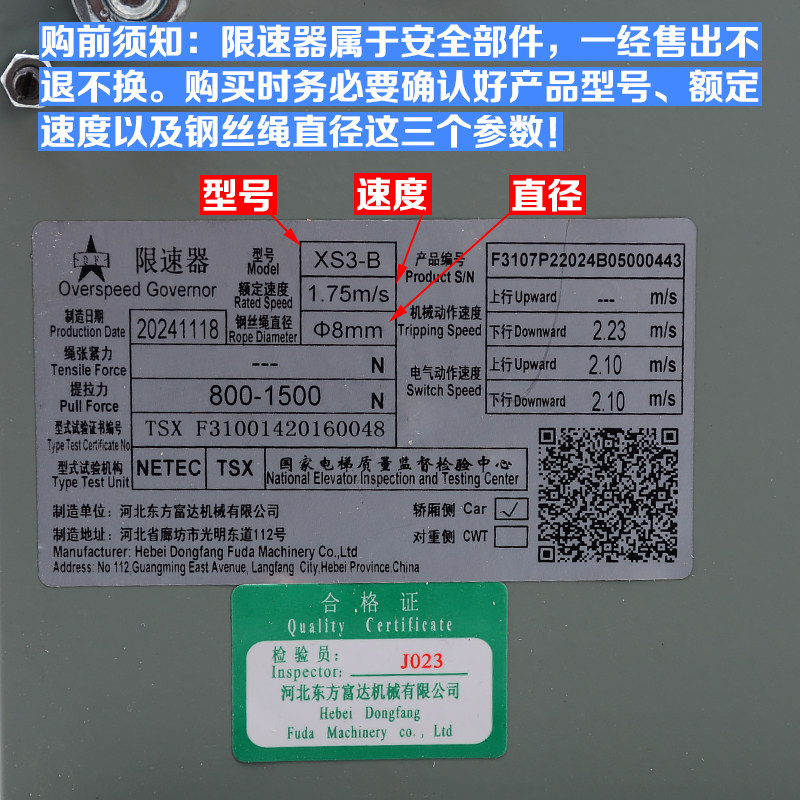 Ограничитель скорости лифта Hebei Dongfang XS3/XS3-B подходит для аксессуаров Tongli Thyssen Fujita Yongda Bolint