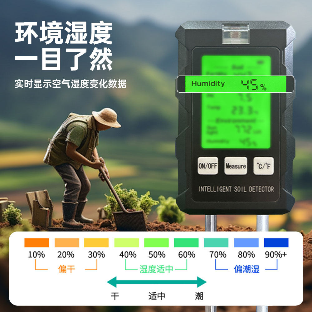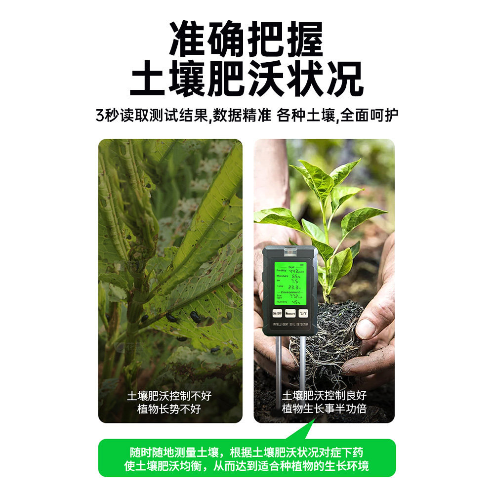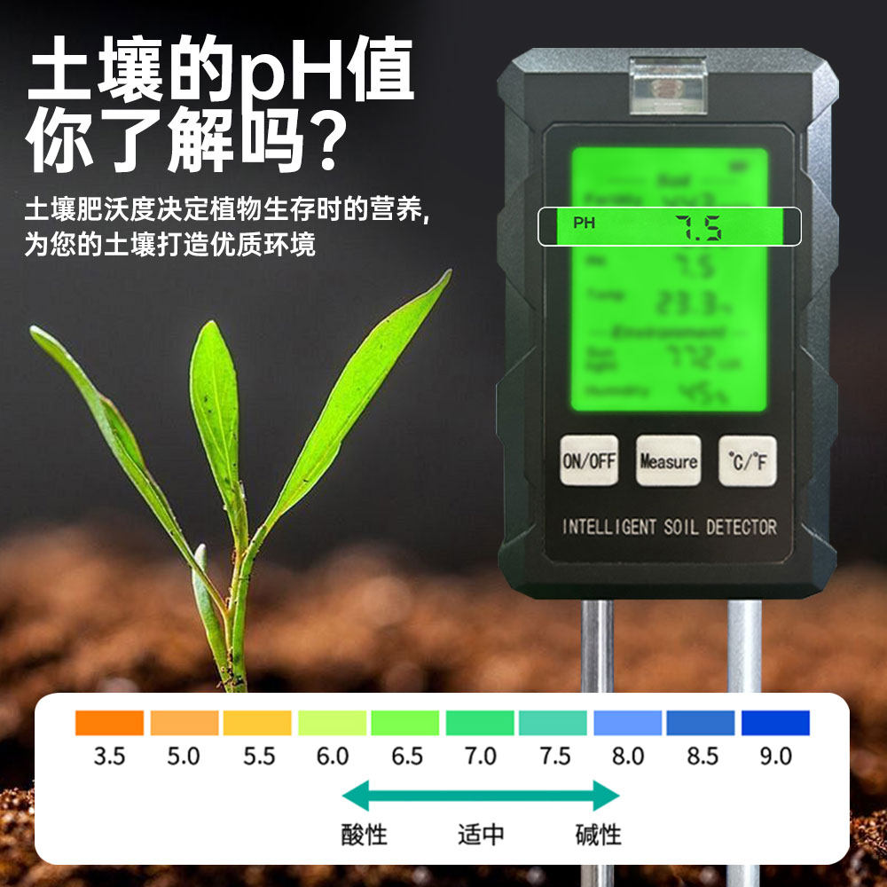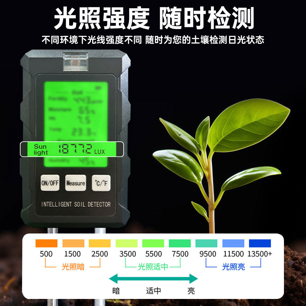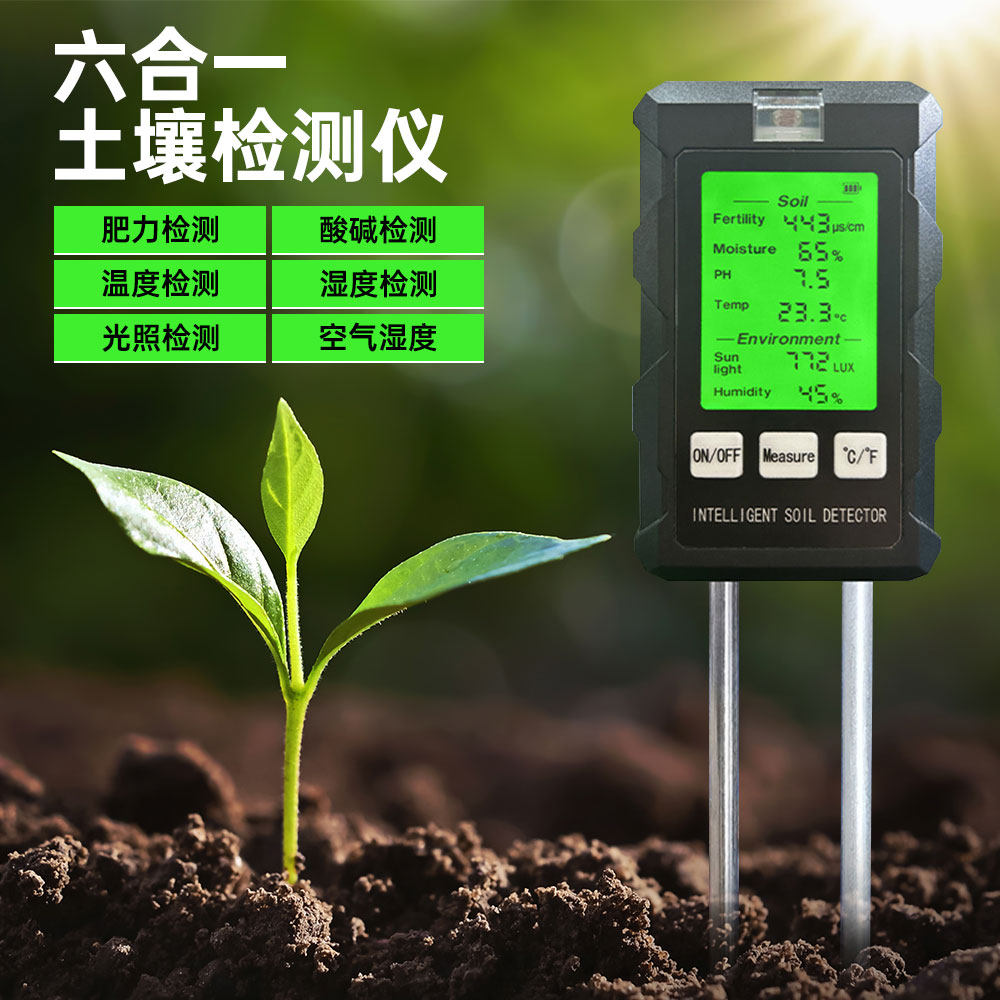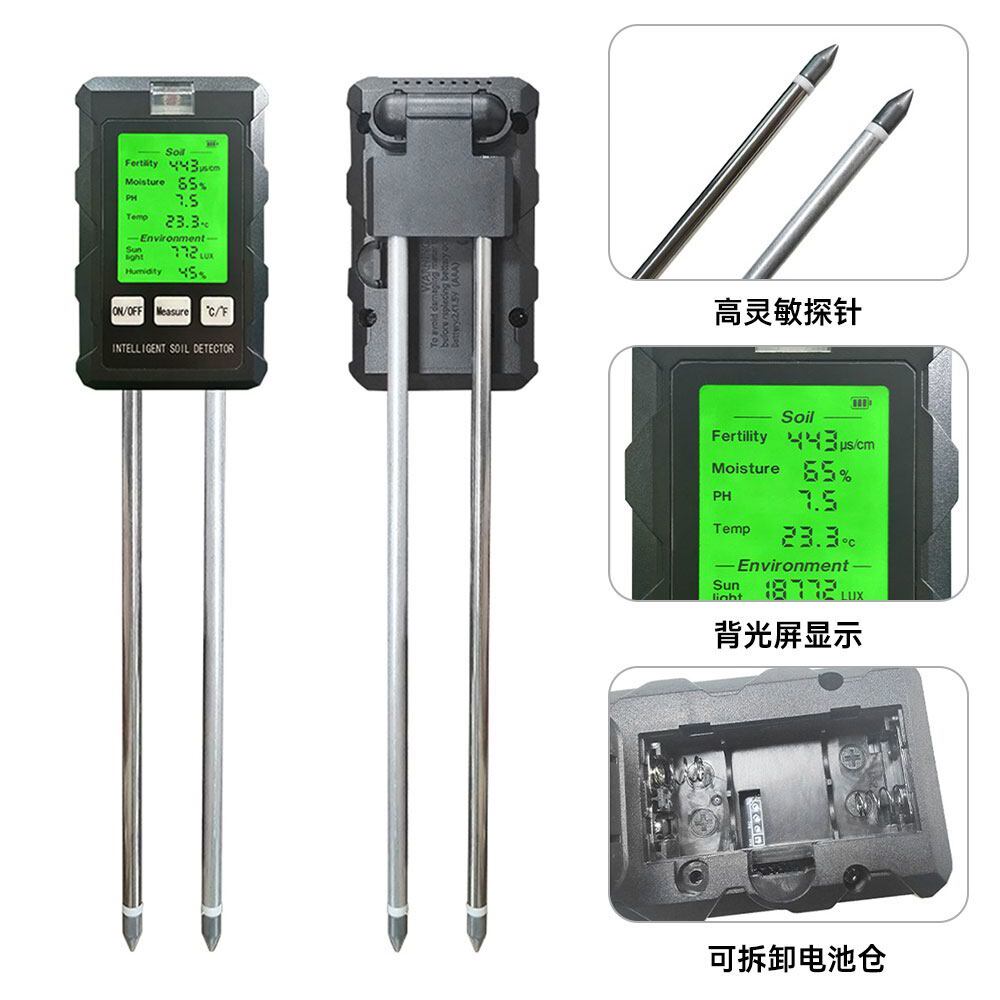 Многофункциональный тестер почвы 6-в-1 с подсветкой, дисплей высокой четкости, датчик обнаружения почвы в теплице