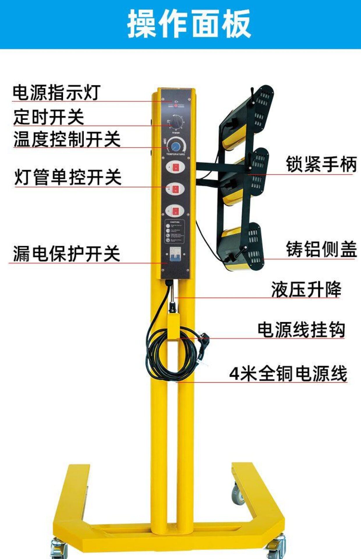 | Цвет: | Специальная лампа для запекания мощностью 1050 Вт для покрасочной камеры., Простая модель с одной лампой мощностью 1050 Вт и функцией синхронизации., Стандартная модель с одной лампой мощностью 1050 Вт и функцией предварительного нагрева., Окрашенный торшер мощностью 2100 Вт с двойной головкой и регулируемой температурой, Окрашенный торшер мощностью 3150 Вт с тремя лампами и регулируемой температурой. |