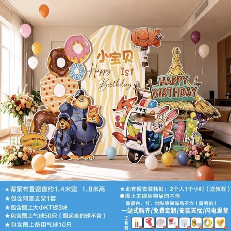 Зверополис, сцена дня рождения, макет kt, доска, фон, стена, атмосфера дня рождения, детская фотография, наряд
