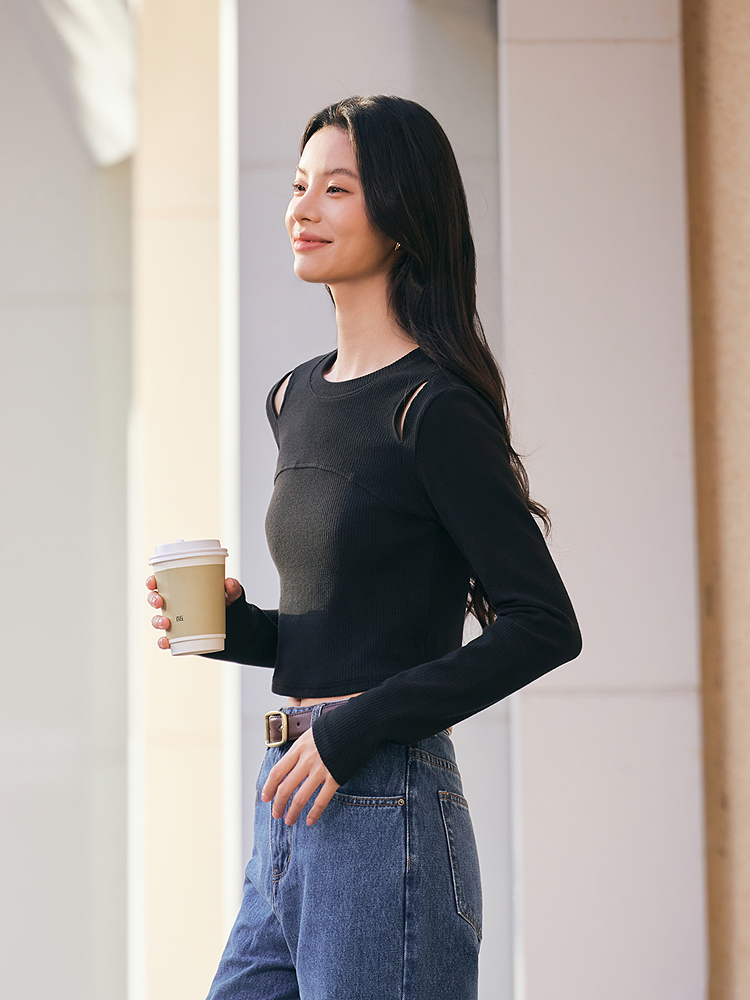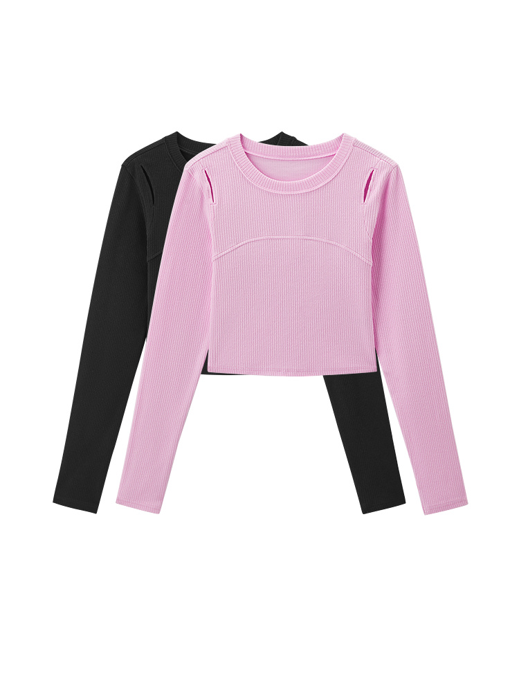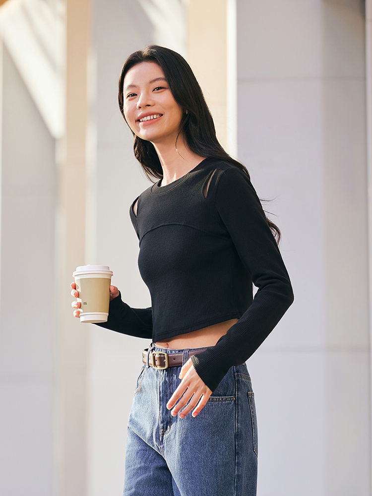 Полу базовая рубашка для женщин сладкий и прохладный дизайн, полая тонкая посадка, тонкая внутренняя пара, короткий весенний сплошной топ можно носить снаружи