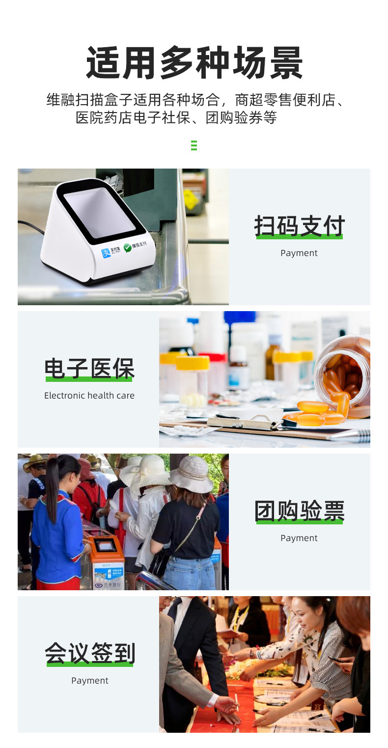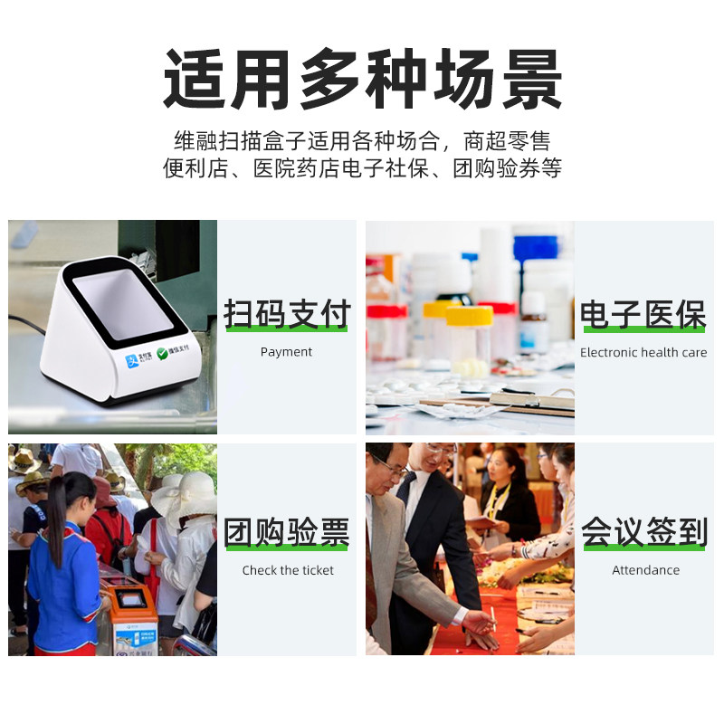 维融 Сканирование кода платежной коробки WeChat Alipay оплата аптека медицинская страховка электронный ваучер проводное сканирование кода сканер кассового аппарата кассовый аппарат супермаркета сканер кассы супермаркета сканер штрих-кода