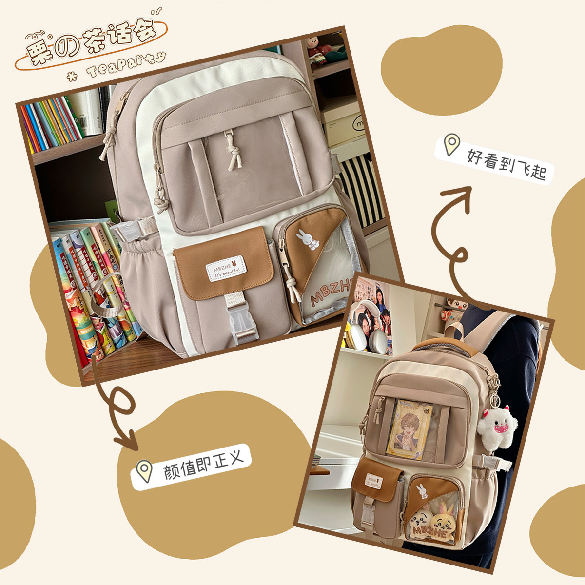 茶话会 Рюкзак для отдыха, сумка через плечо, вместительный и большой ранец со сниженной нагрузкой, ноутбук для школьников, для средней школы