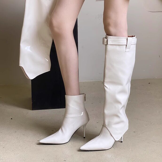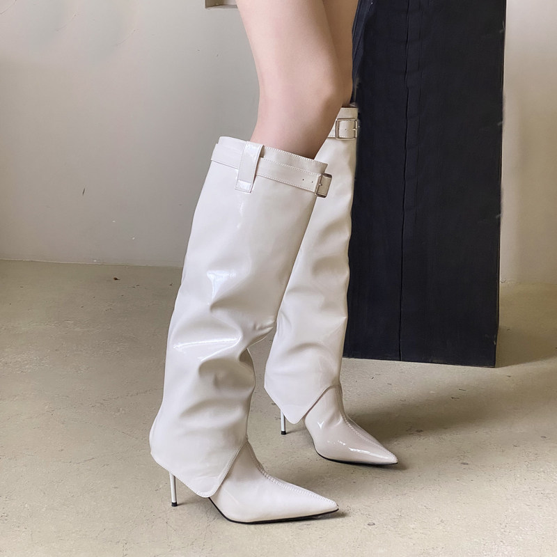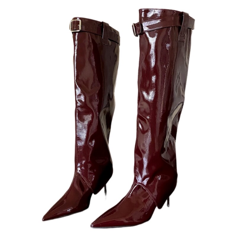 СЫЛШ двусторонний стиль!Бордовые женские сапоги на высоком каблуке из лакированной кожи для осени и зимы, женские короткие сапоги Yujie на тонком каблуке с острым носком