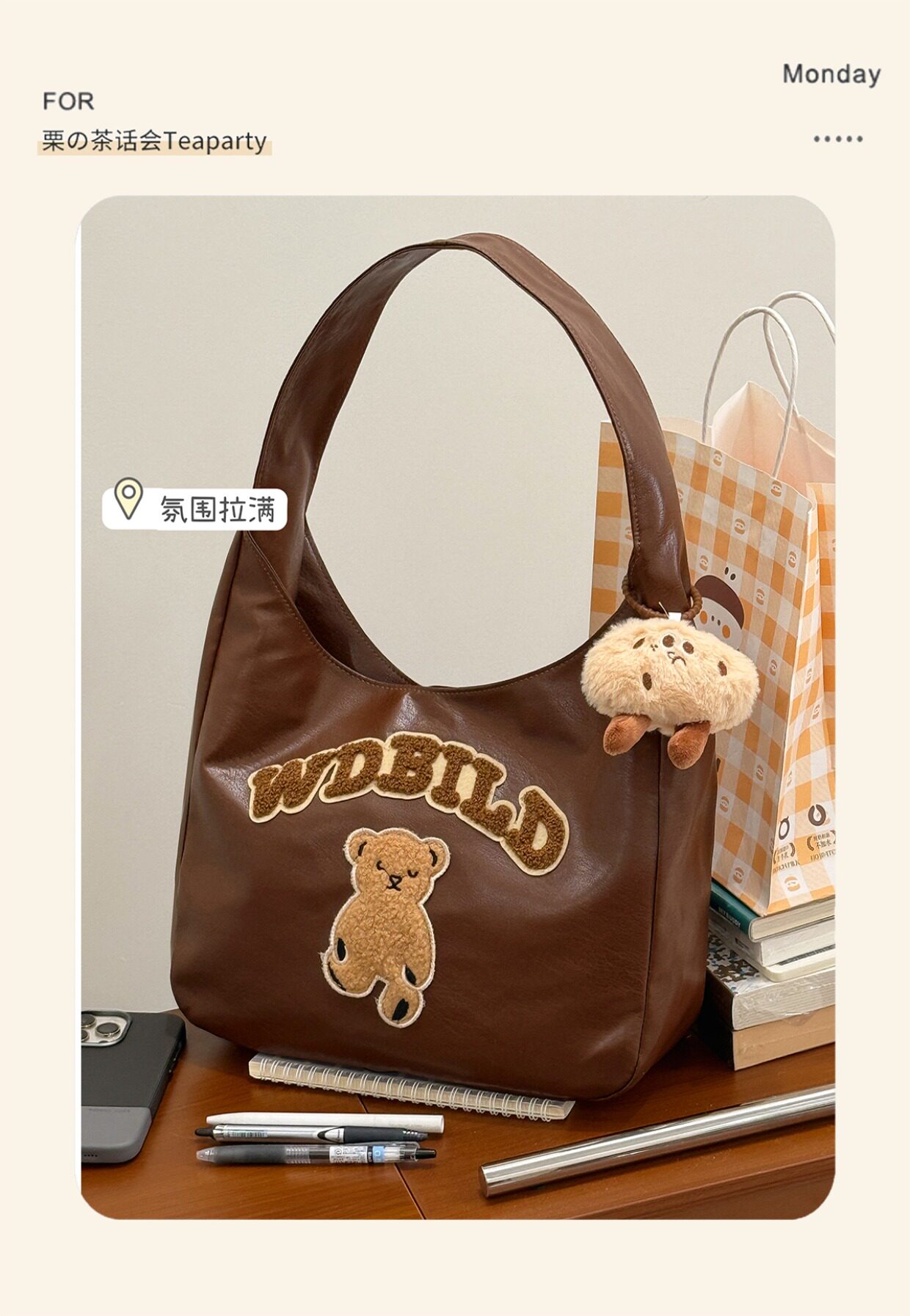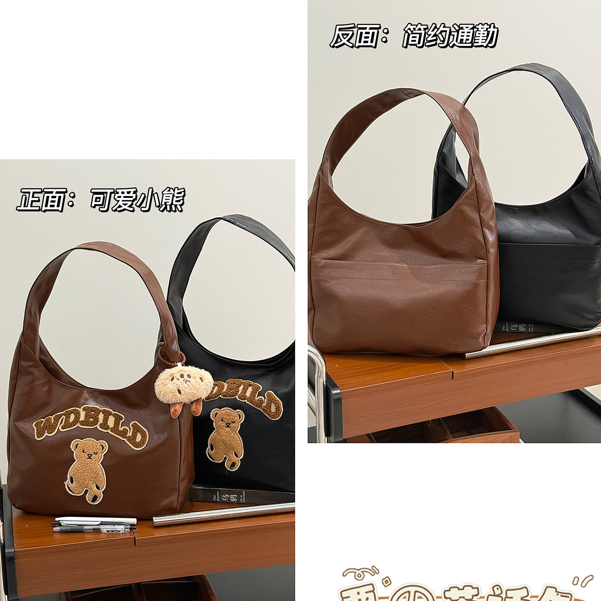 Полиуретановая милая вместительная и большая сумка на одно плечо для отдыха, сумка через плечо, в американском стиле, подходит для студента