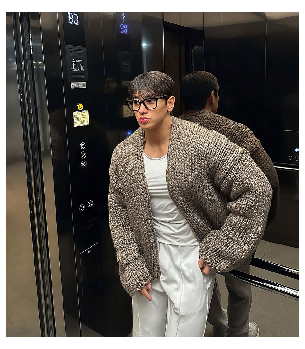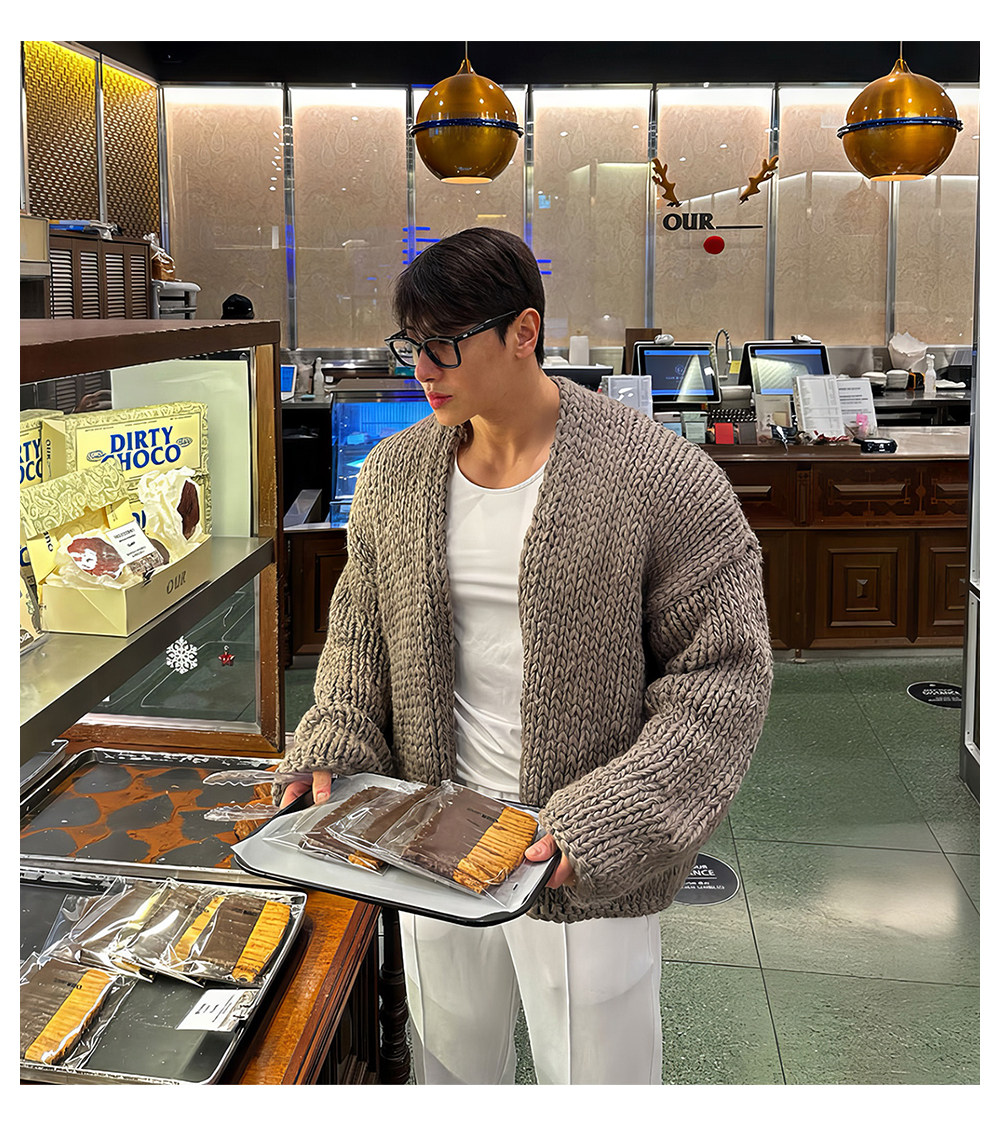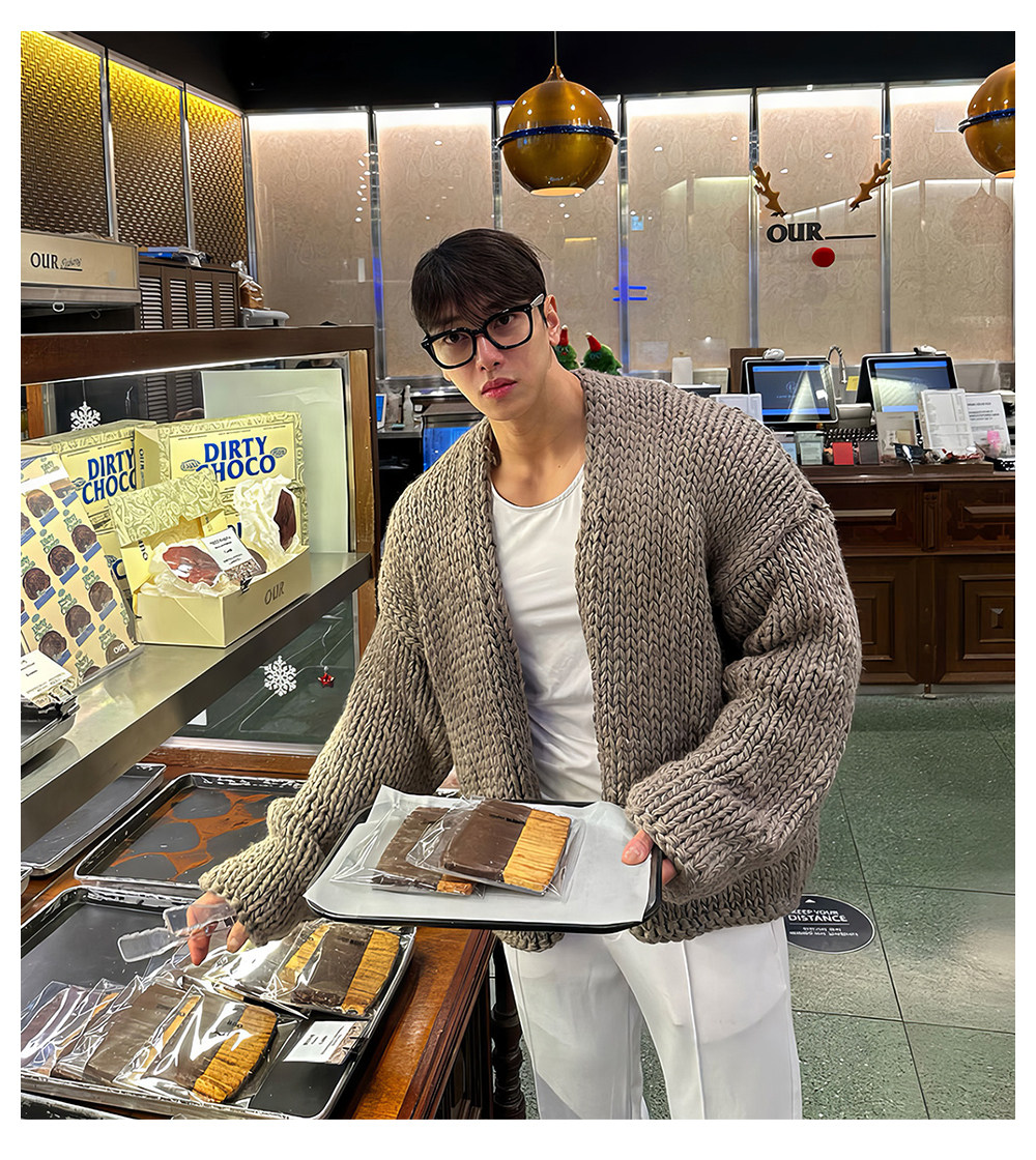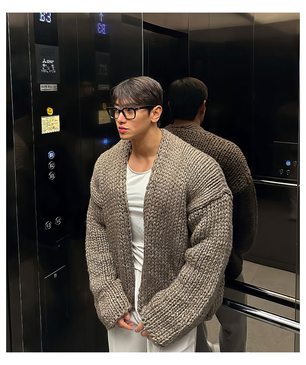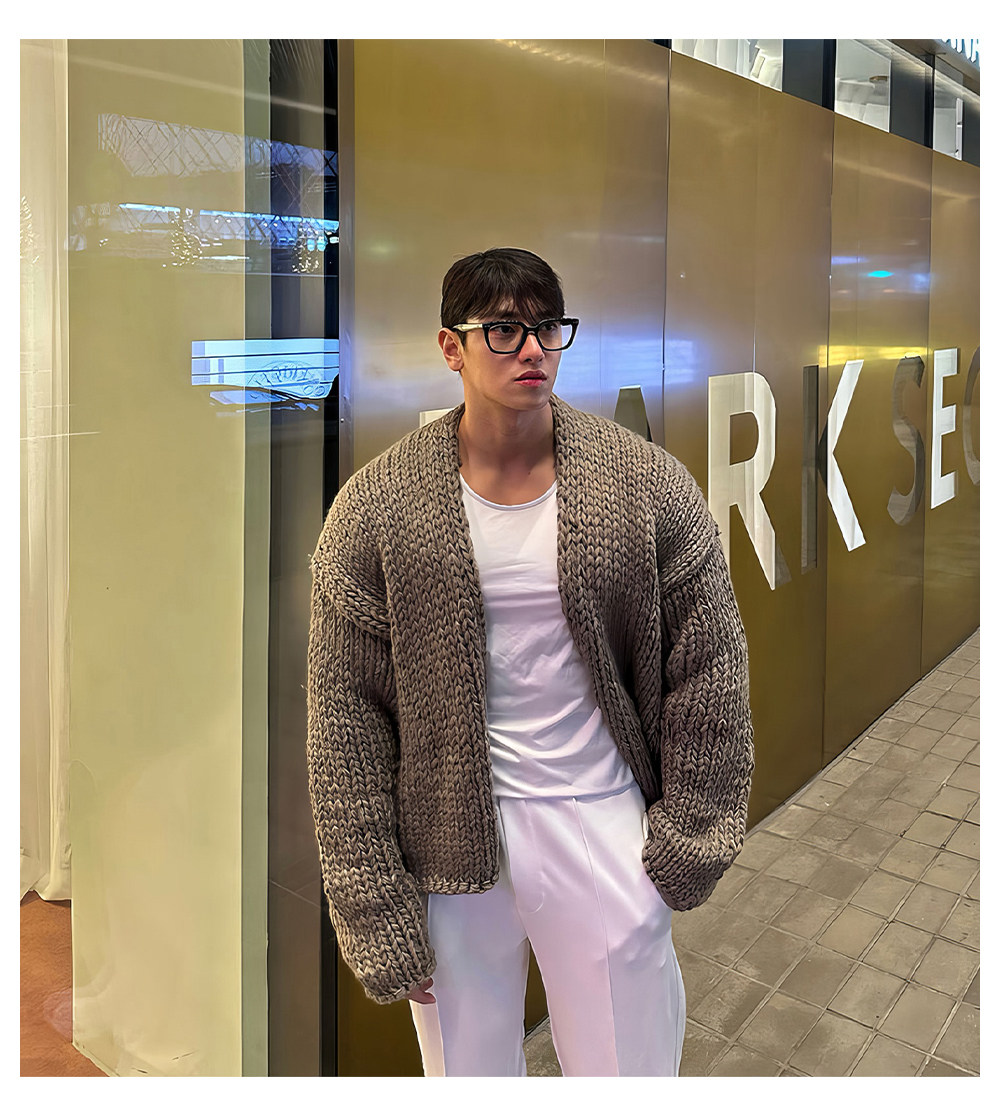 Короткий свитер, мужской зимний плетеный трикотажный кардиган, увеличенная толщина, изысканный стиль, V-образный вырез