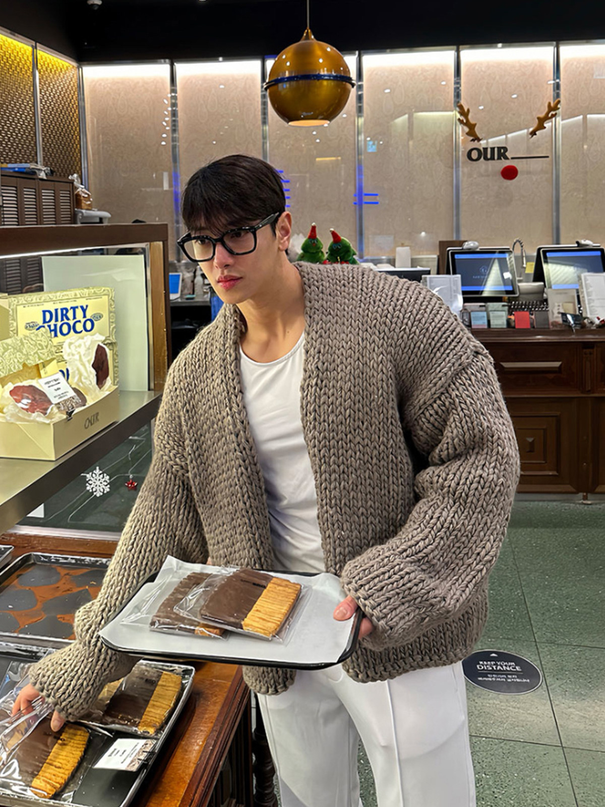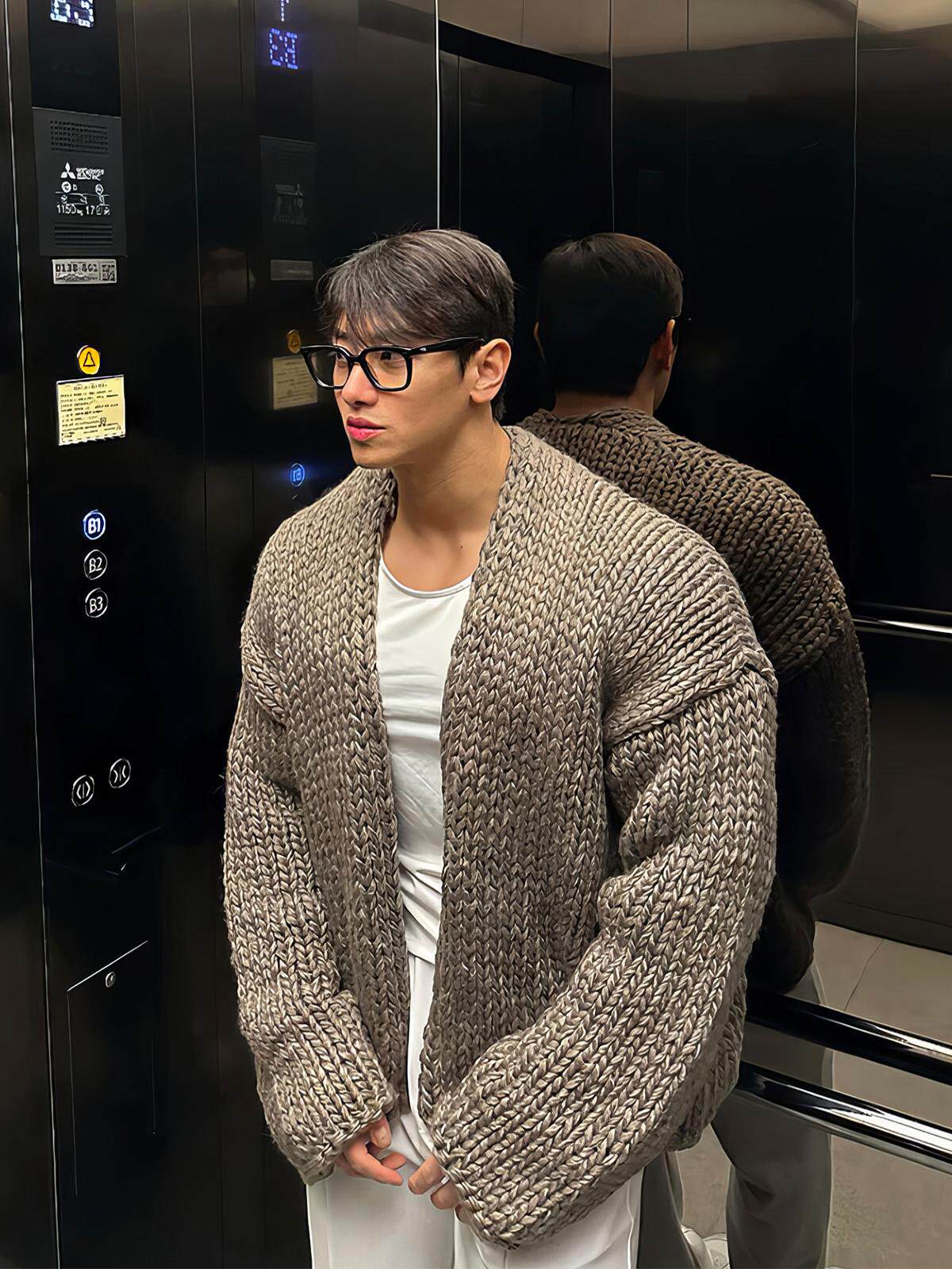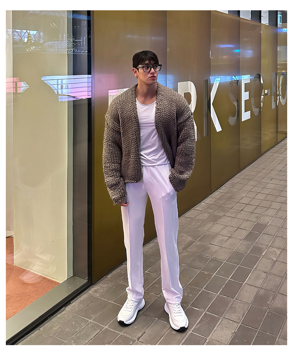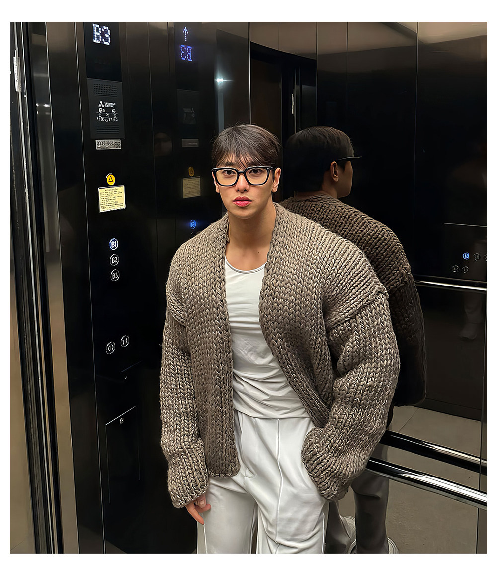 Короткий свитер, мужской зимний плетеный трикотажный кардиган, увеличенная толщина, изысканный стиль, V-образный вырез