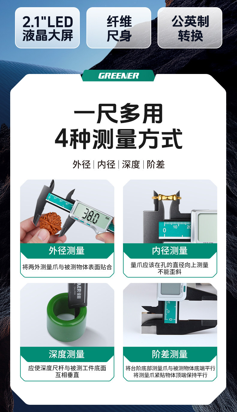 Штангенциркуль с цифровым дисплеем «Зеленый лес», высокоточный промышленный маленький игрушечный ювелирный браслет, специальный штангенциркуль глубины и высоты