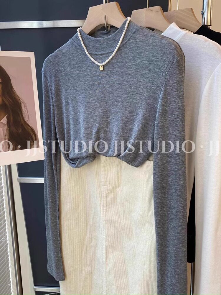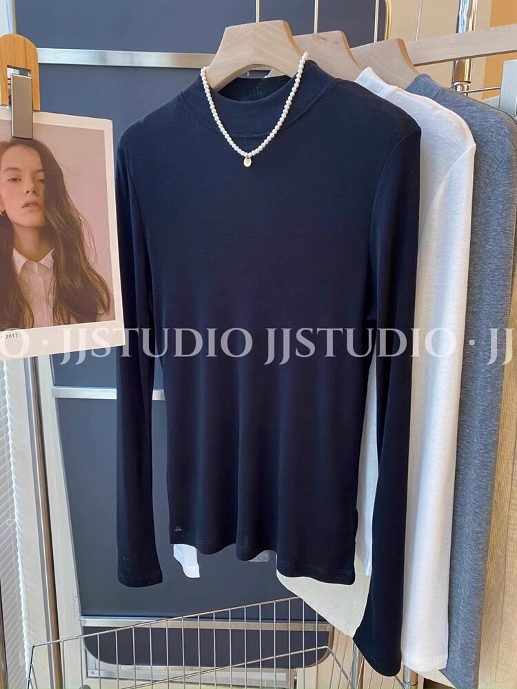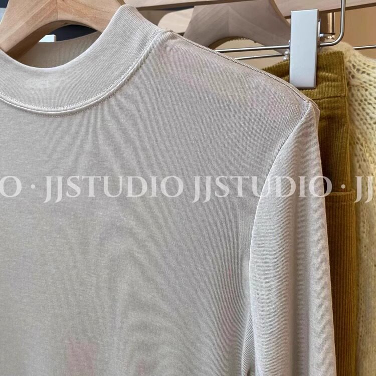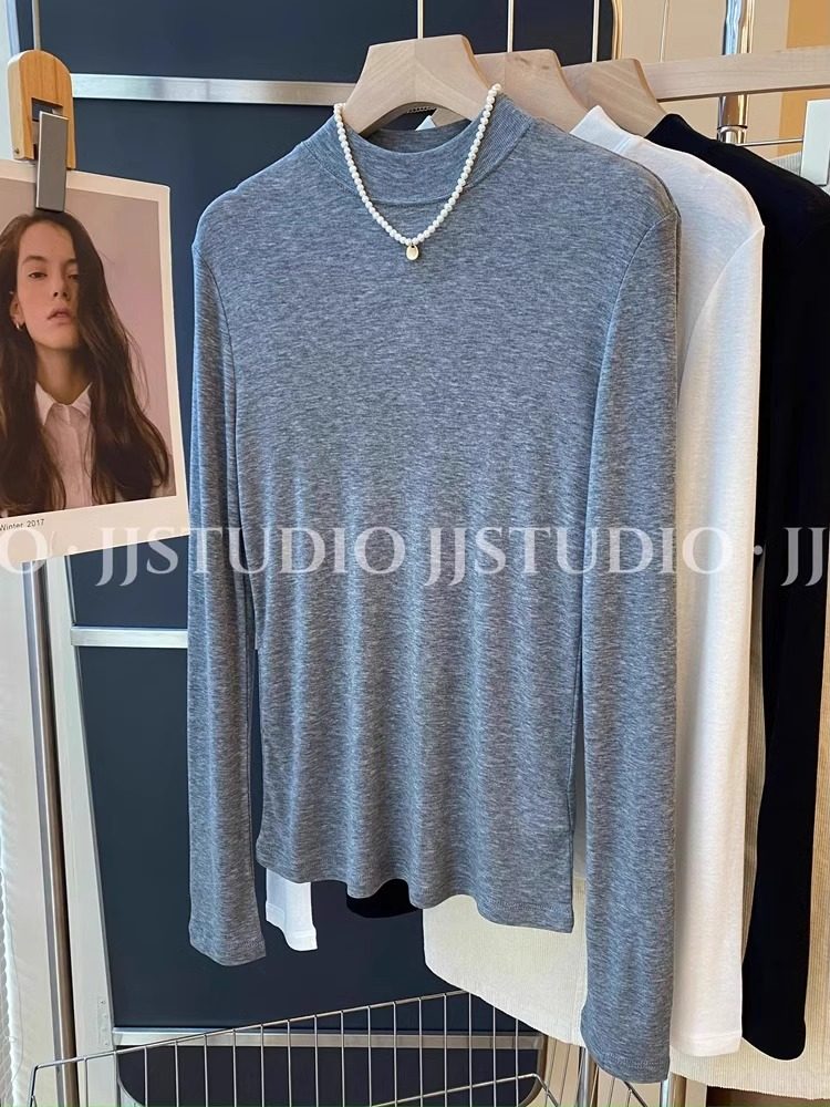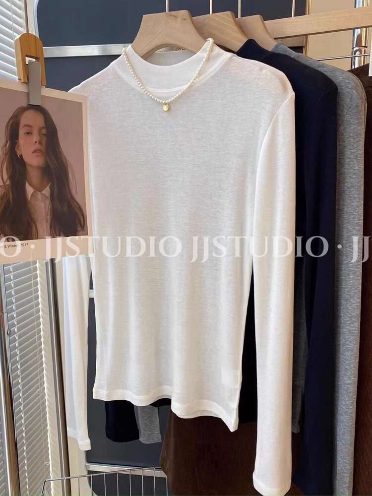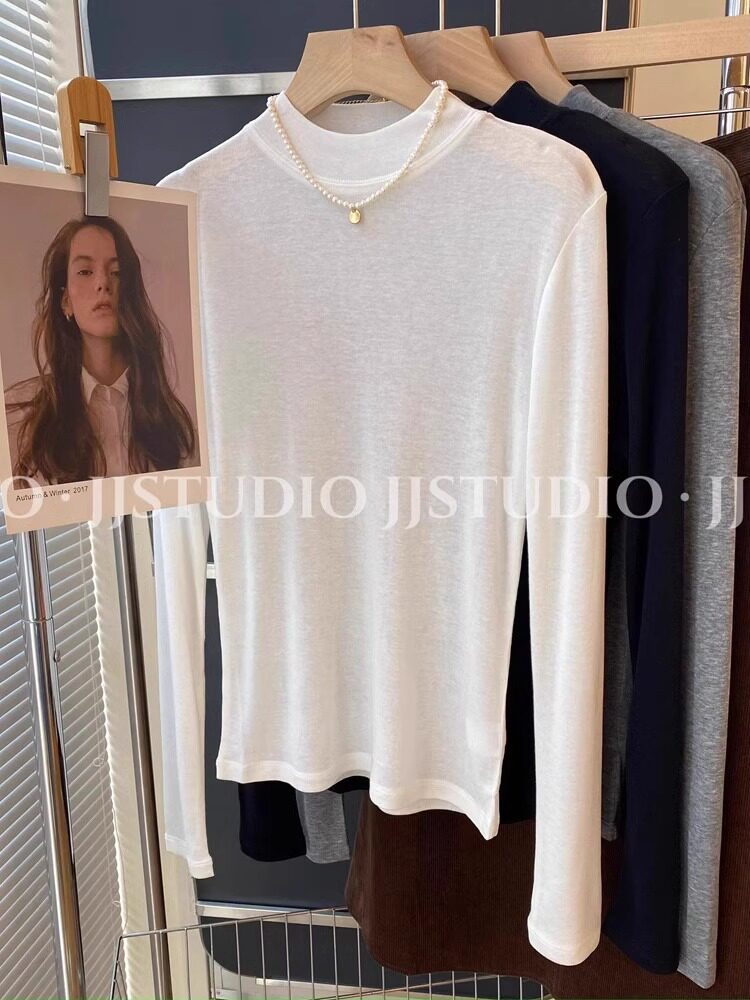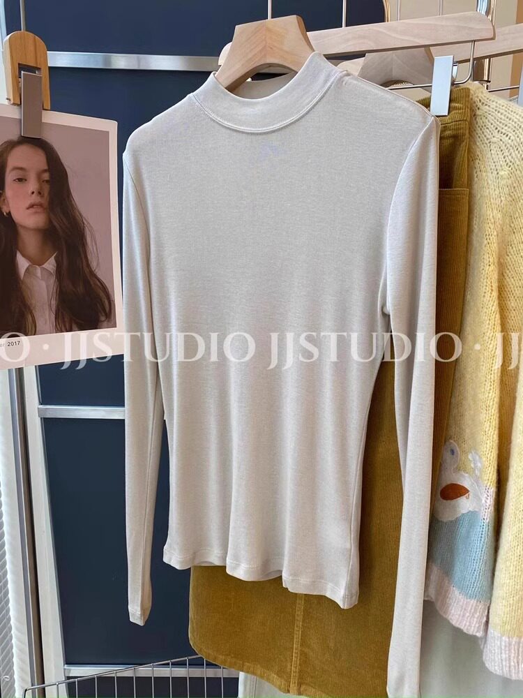 Шерстяная маска для лица, осенняя демисезонная футболка, базовый приятный телу лонгслив, новая коллекция, свободный крой, высокий воротник