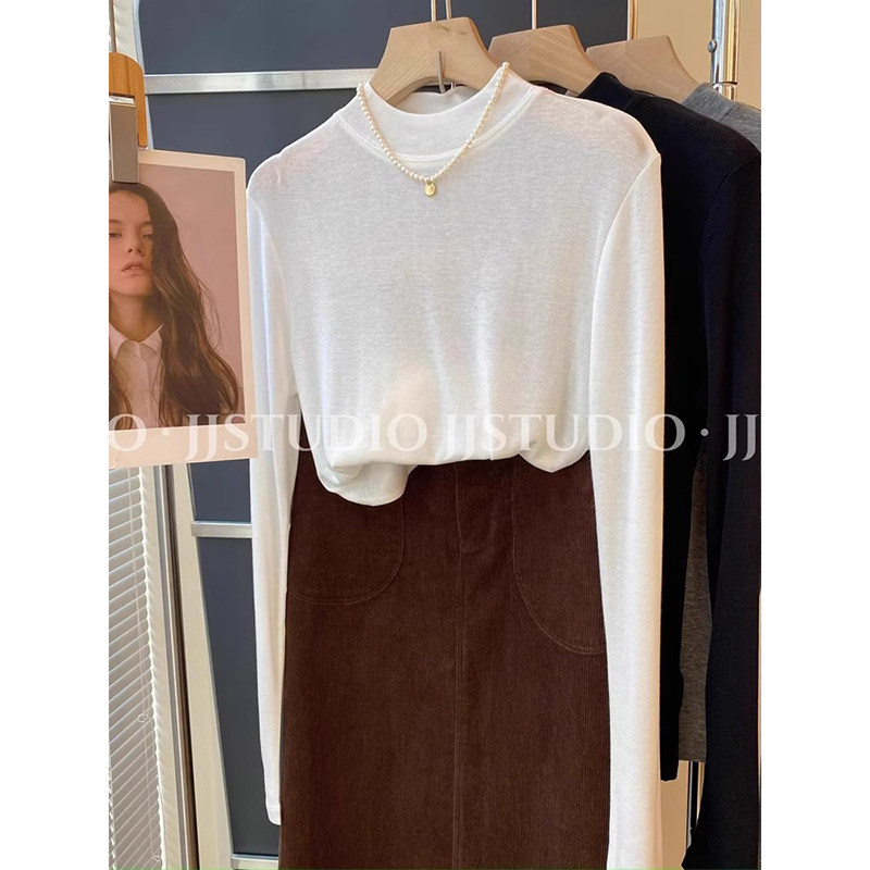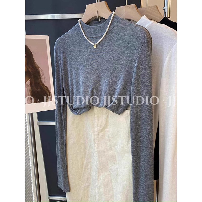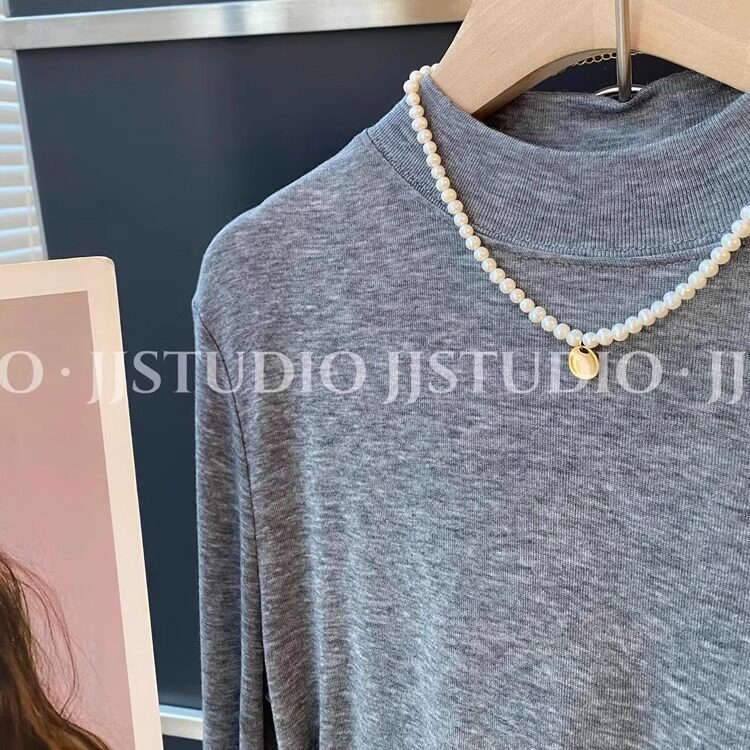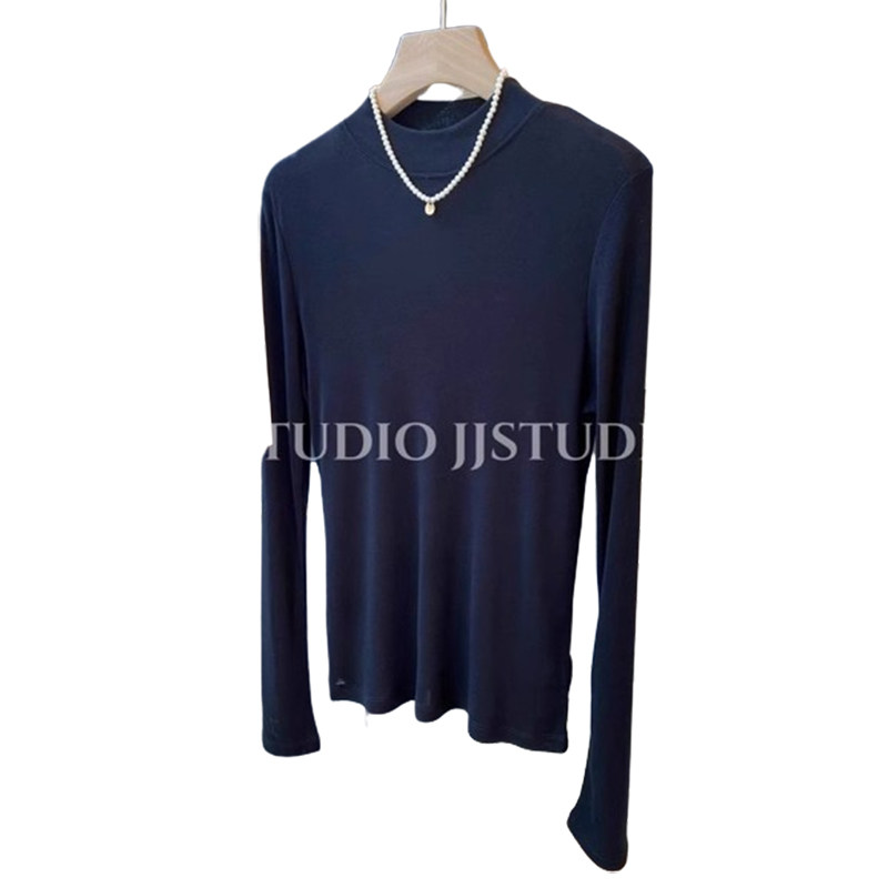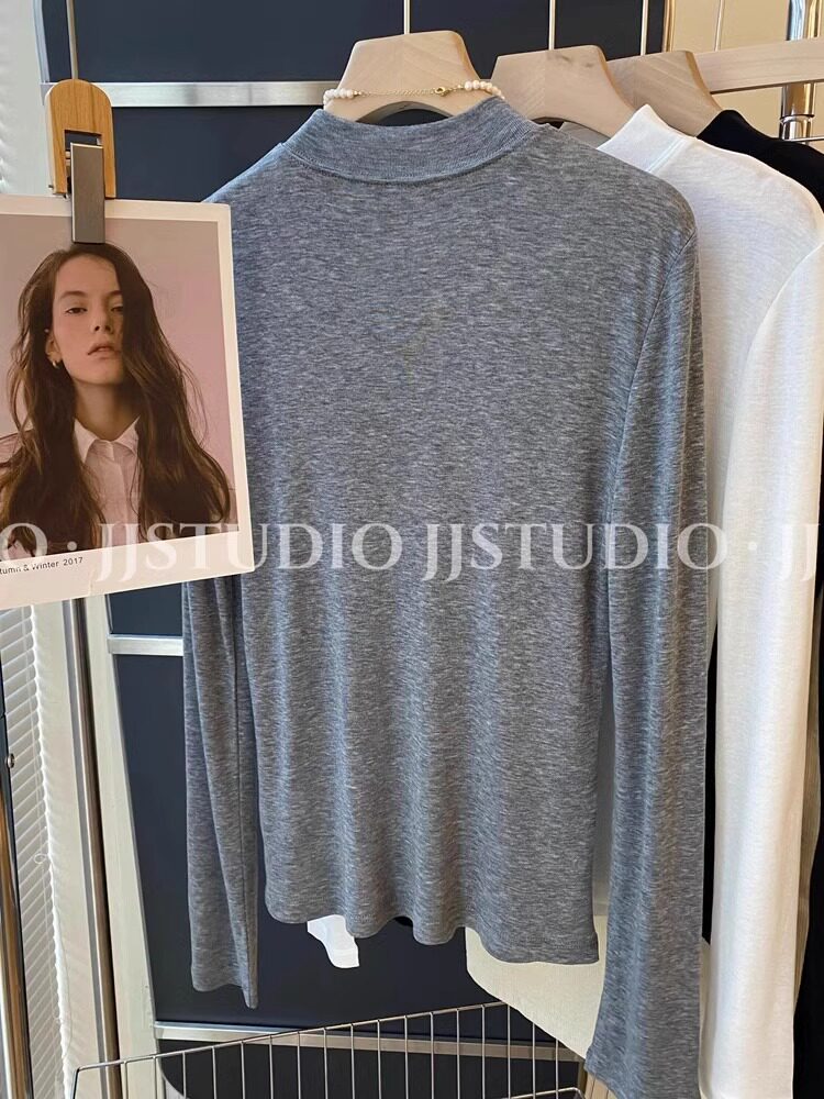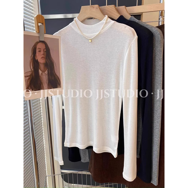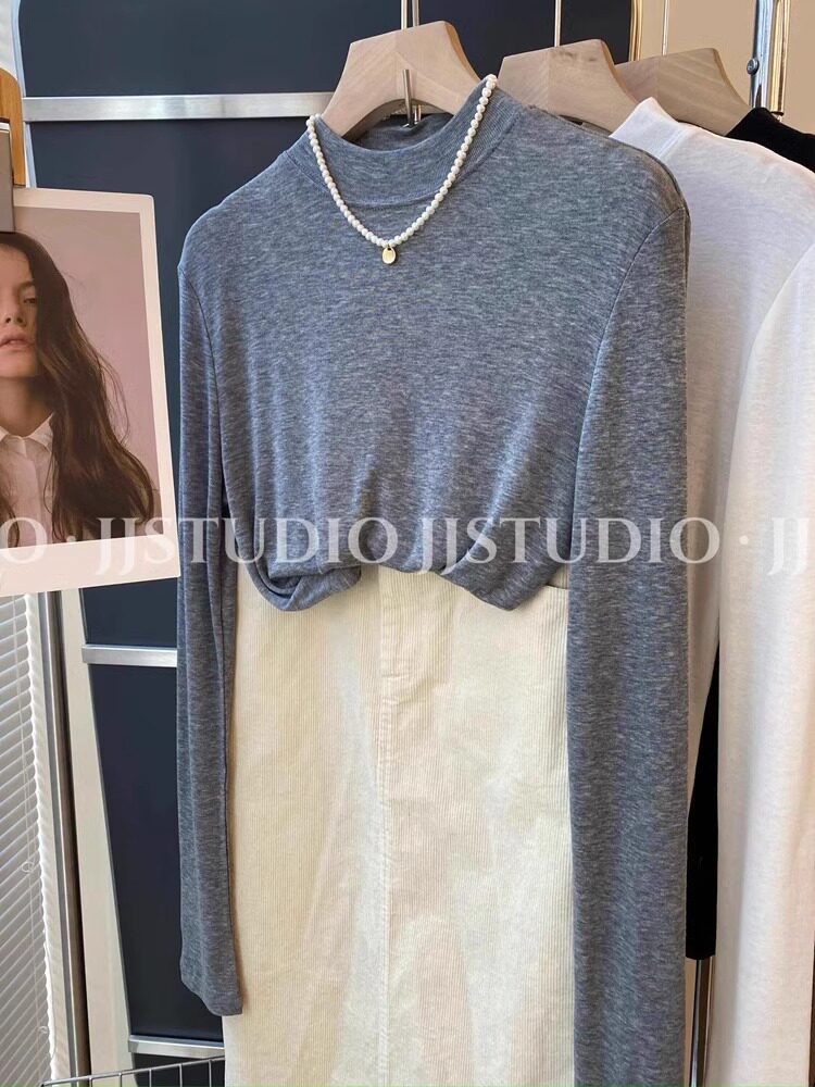 Шерстяная маска для лица, осенняя демисезонная футболка, базовый приятный телу лонгслив, новая коллекция, свободный крой, высокий воротник