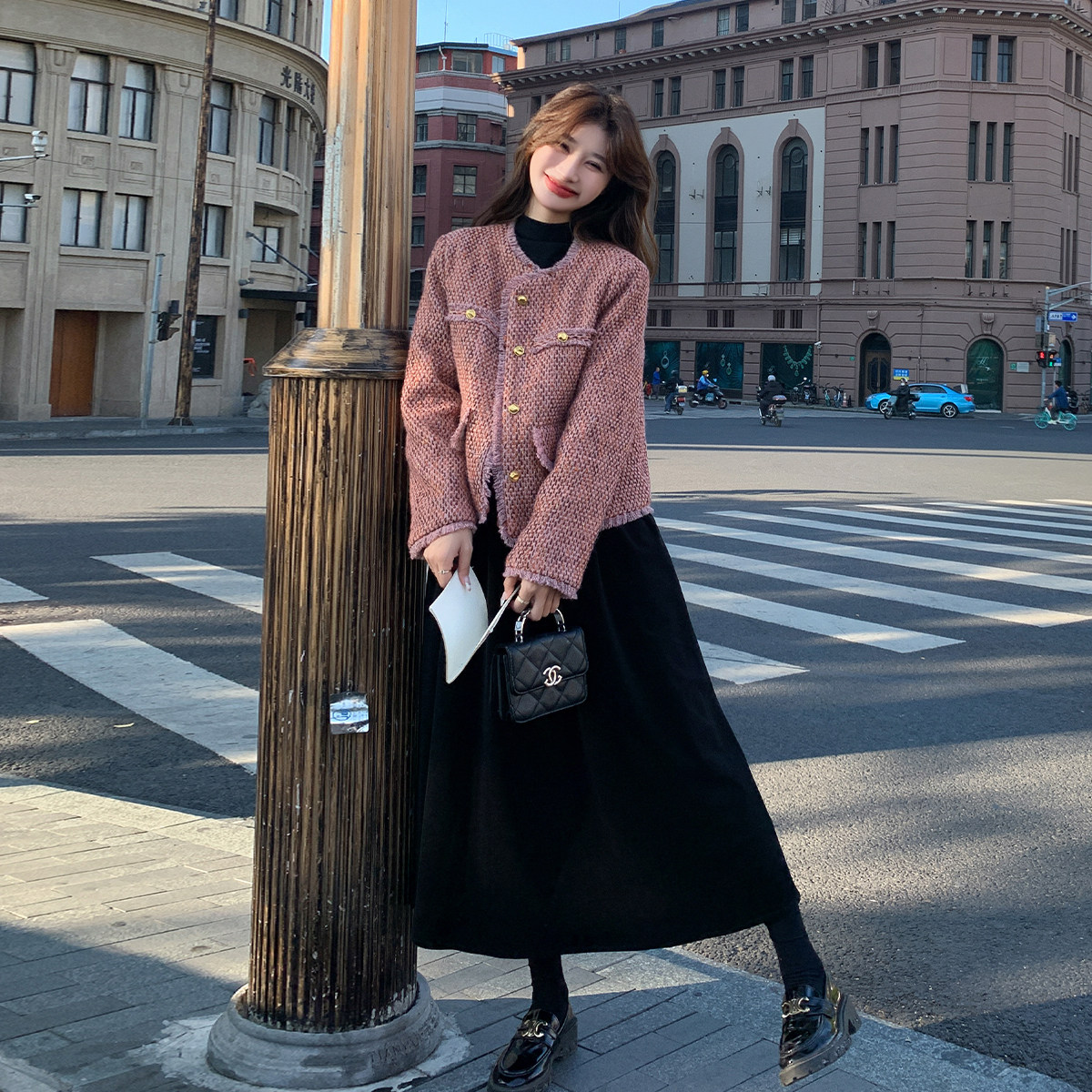 Модное пальто, платье, весенний комплект, длинная юбка, в стиле Шанель, тренд сезона, в западном стиле