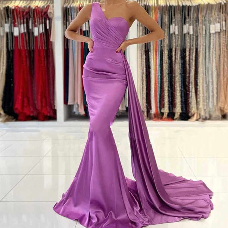 Сексуальное одно плечо атласное платье русалки вечернее платье платье
