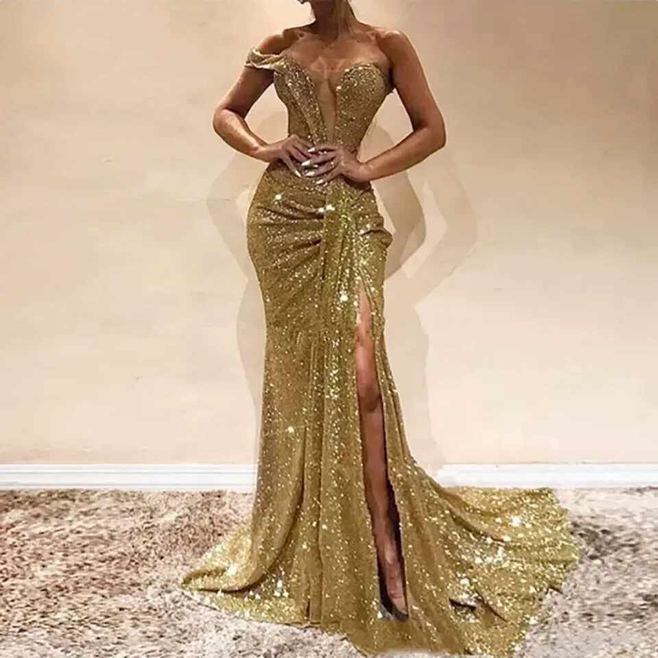 Золотое блеск с бисером с высокой щелью