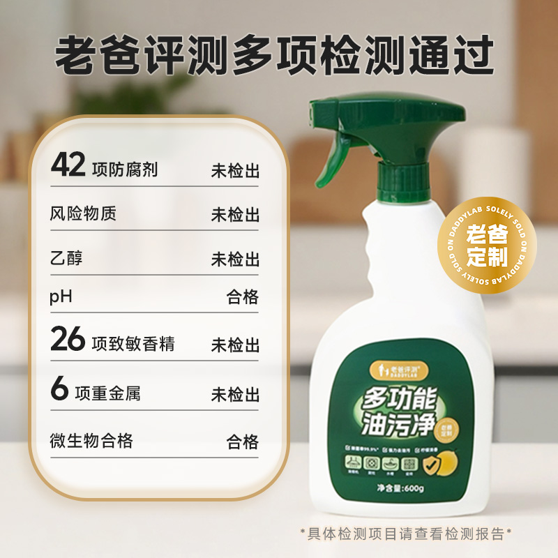 Папа оценивает изготовленное на заказ средство для удаления масляных пятен, мощное средство для удаления масляных пятен, кухонную вытяжку, средство для чистки масляных пятен на плите.