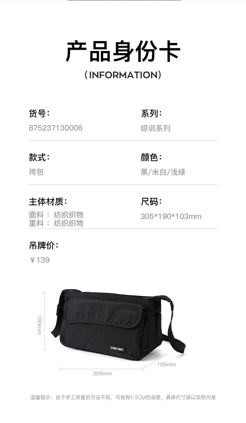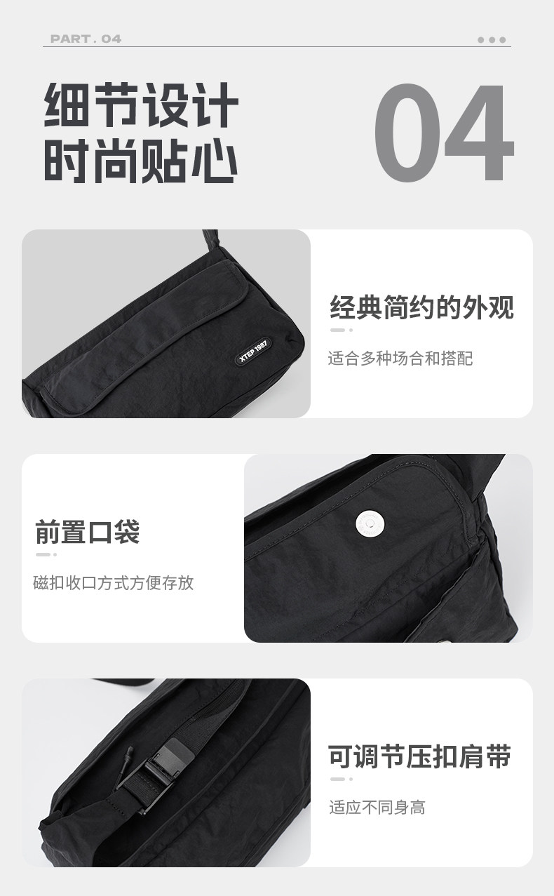Xtep, вместительная и большая сумка на одно плечо для отдыха, водоотталкивающая сумка через плечо для влюбленных, спортивная сумка, осенняя