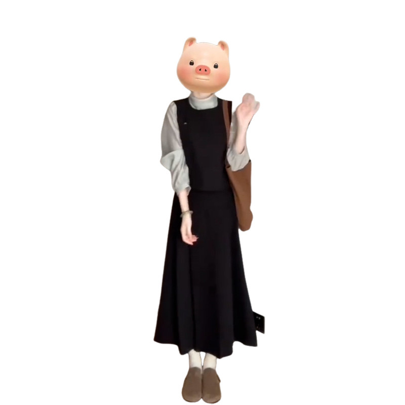 Черное осеннее платье-комбинация, длинная юбка, комплект, французский стиль, подходит для подростков, изысканный стиль