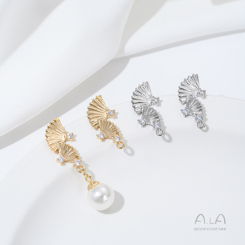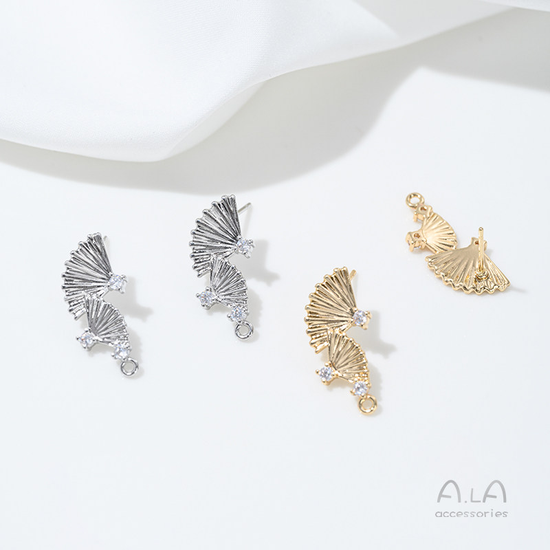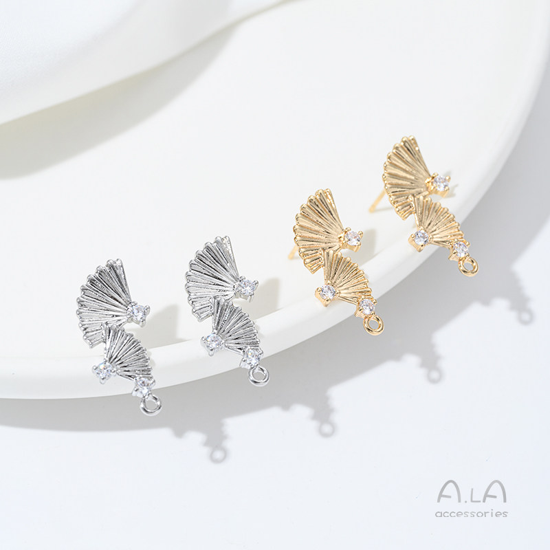 Ретро круглый веер с цирконом, украшение, серьги, 14 карат, золотой цвет, DIY