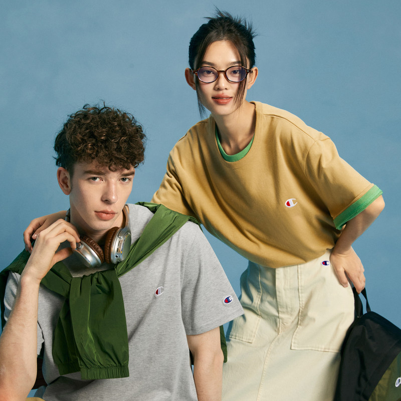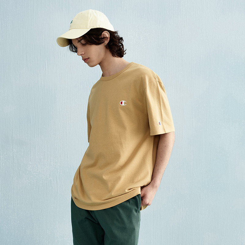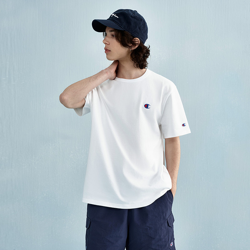 [Гардероб всех девочек в комнате прямой трансляции] Яркая маленькая футболка с круглым вырезом Champion, вышитая буквой C.