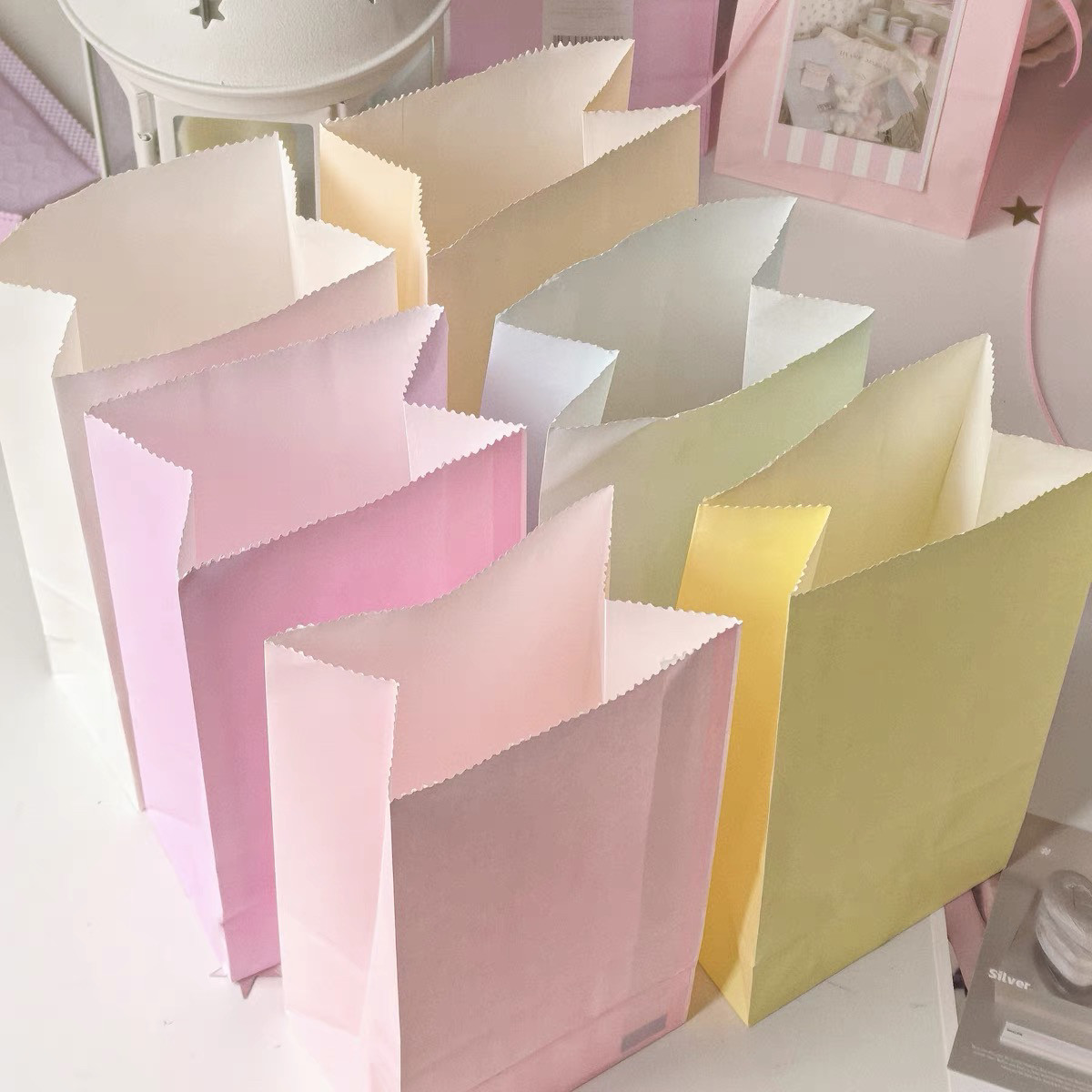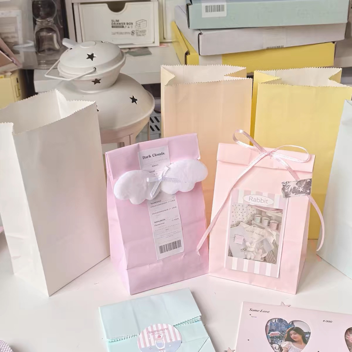 Ins macaron Candy Storage бумажный пакет с твердым цветом подарочной пакетной карты упаковка материал для пакета пакета упаковки пакета пакета пакета