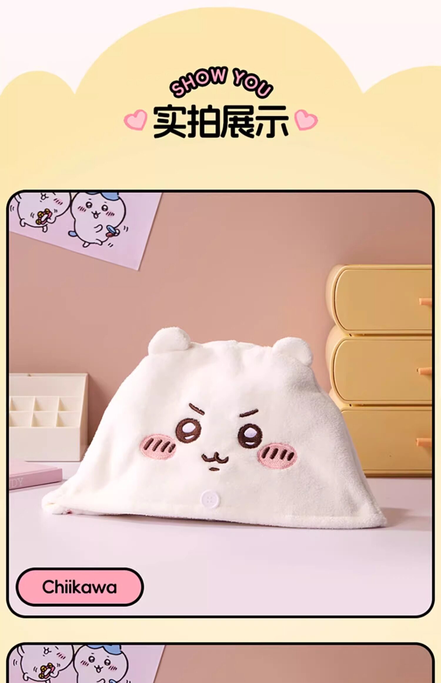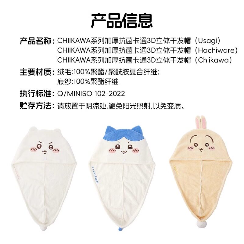 | Цвет: | Трехмерное полотенце для волос, 3D, 3D Трехмерная сухая шляпа для волос (Hachiware), 3D Трехмерная сухая шляпа для волос (Chiikawa) |