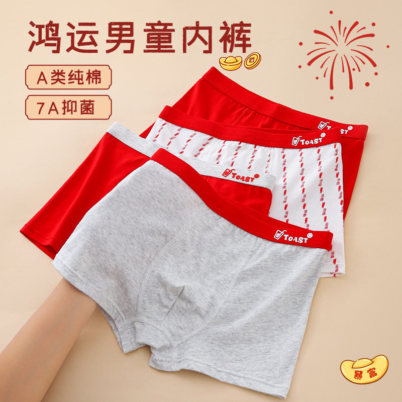 Детское нижнее белье для мальчиков, штаны, красный детский оберег на день рождения, для средней школы