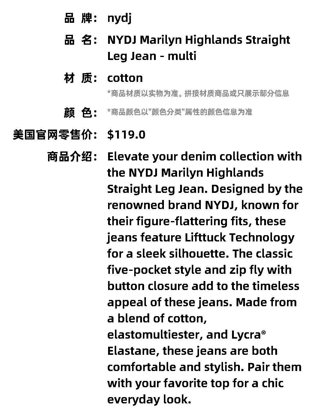 Джинсы прямого кроя NYDJ Marilyn Highlands с автономным управлением - мультиамериканские Олимпийские игры