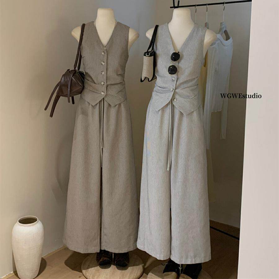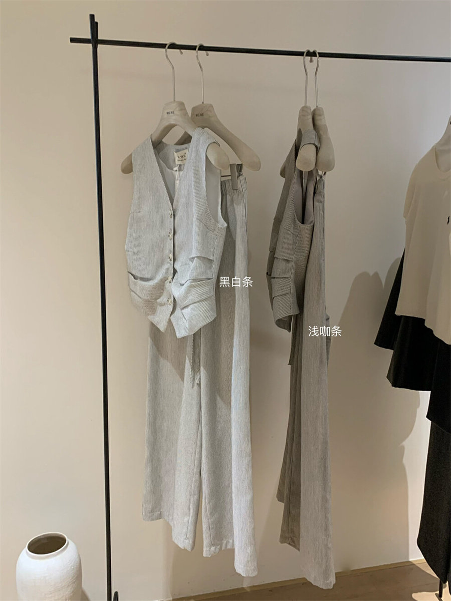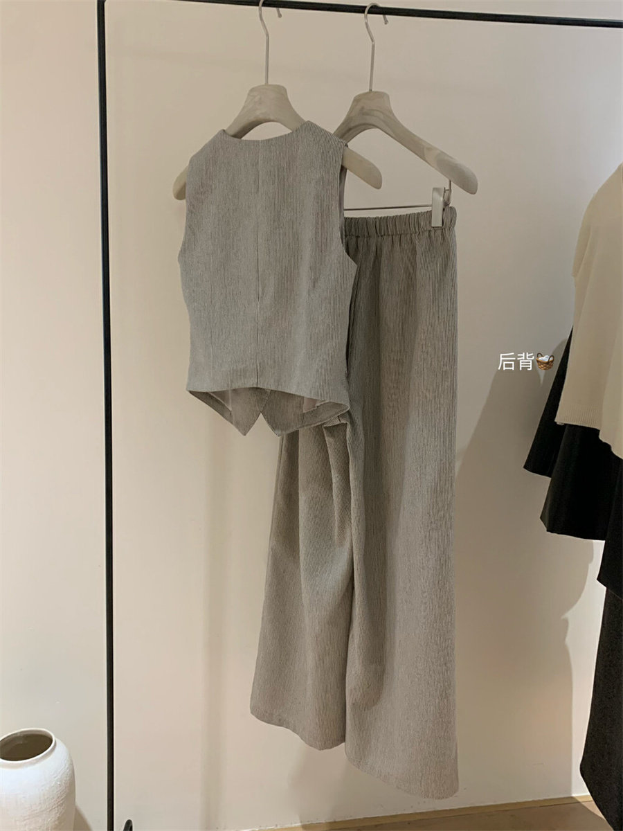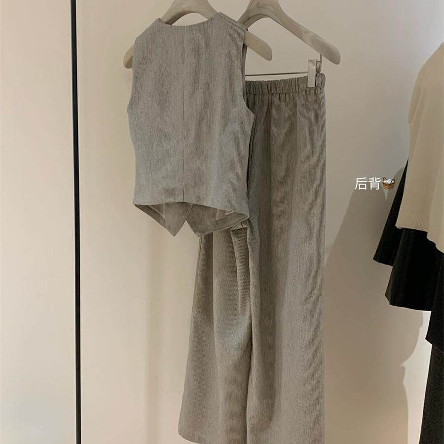 Весенний костюм, комплект, жилет, штаны, в корейском стиле, простой и элегантный дизайн, V-образный вырез