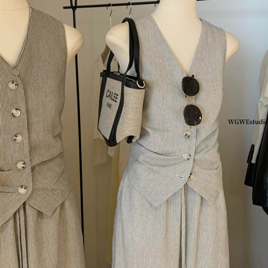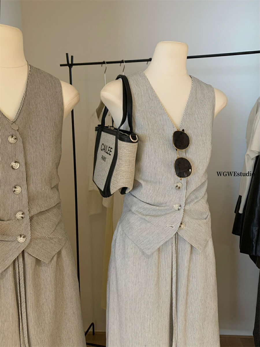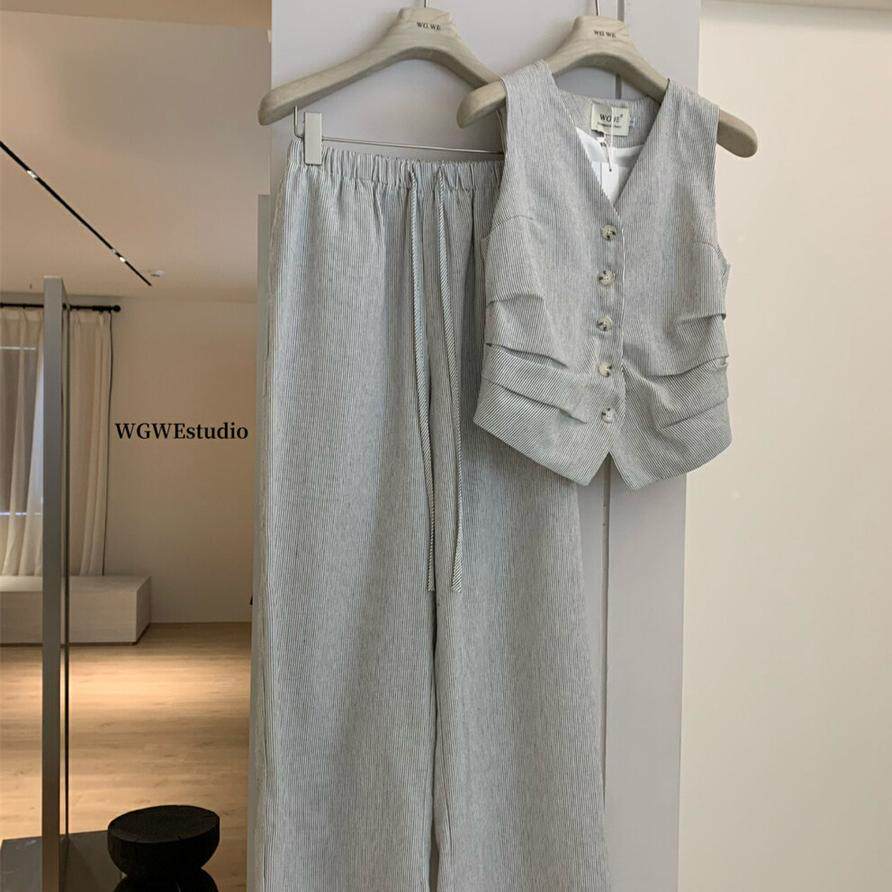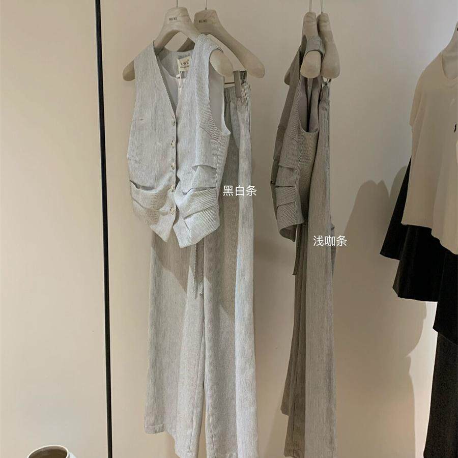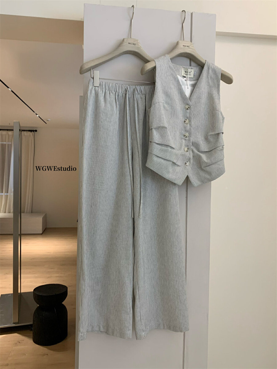 Весенний костюм, комплект, жилет, штаны, в корейском стиле, простой и элегантный дизайн, V-образный вырез