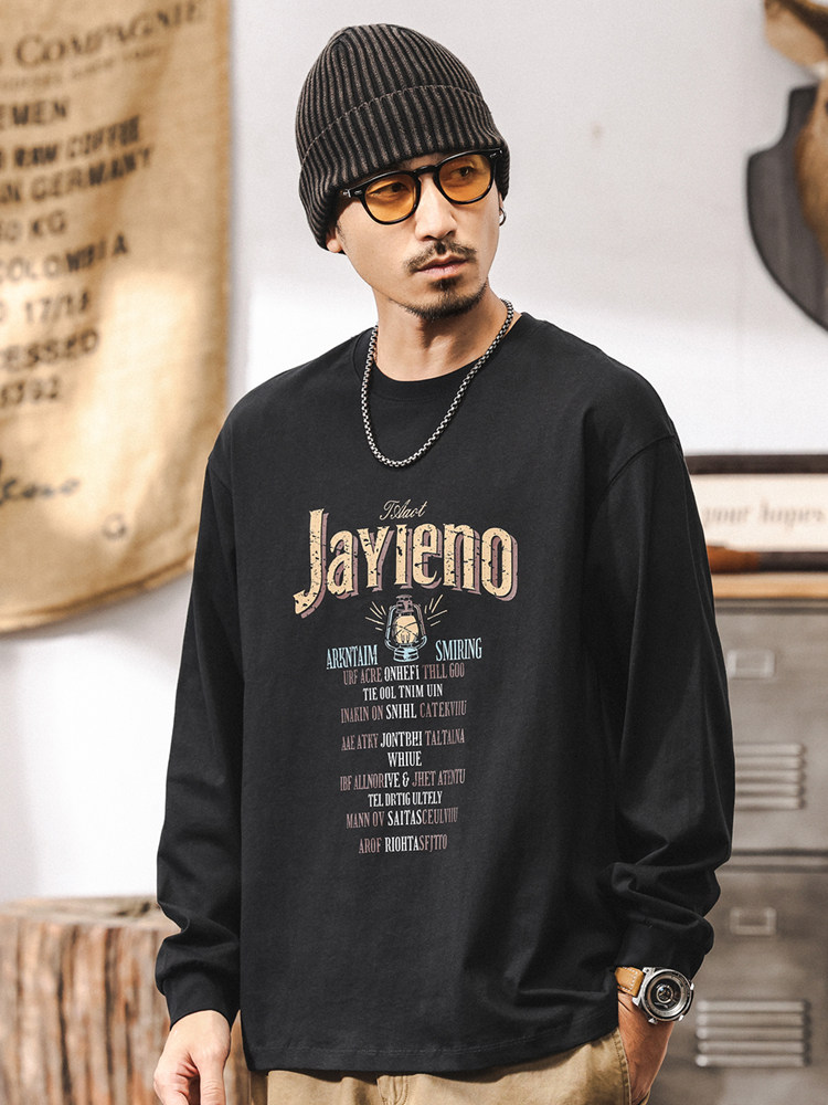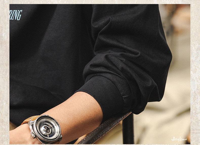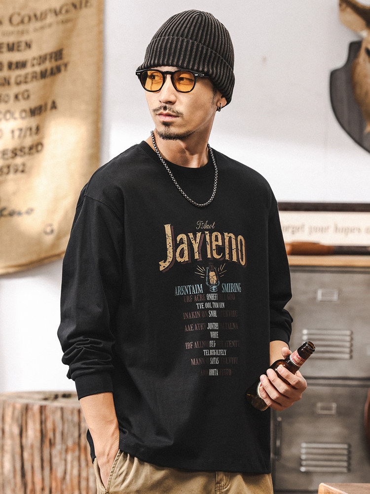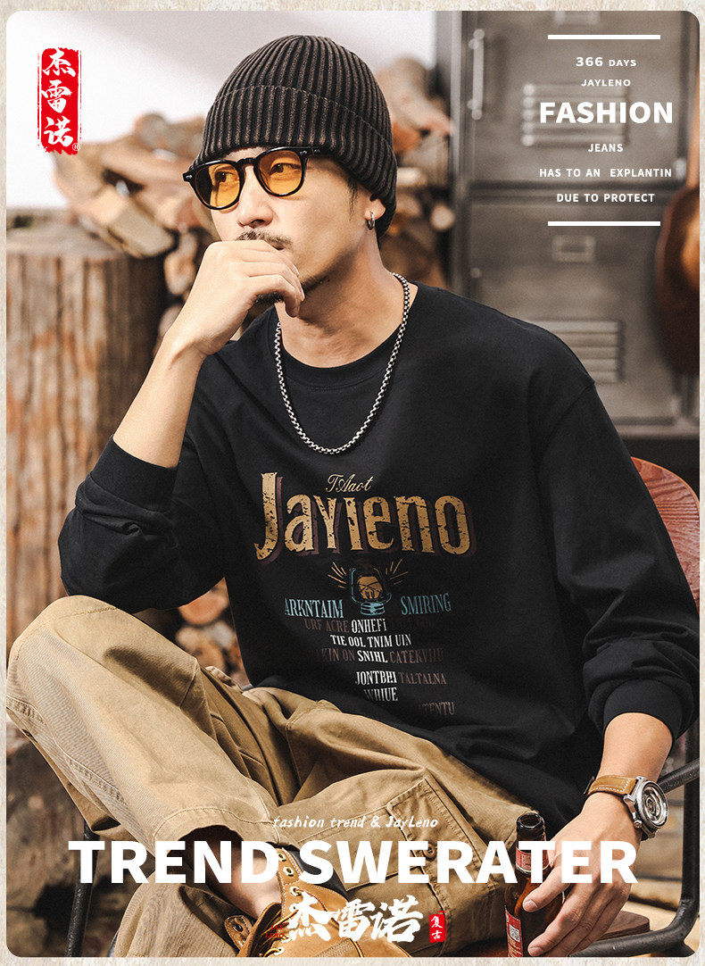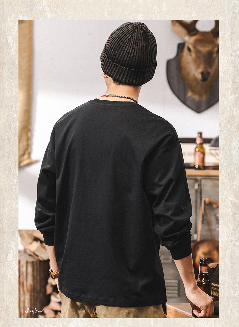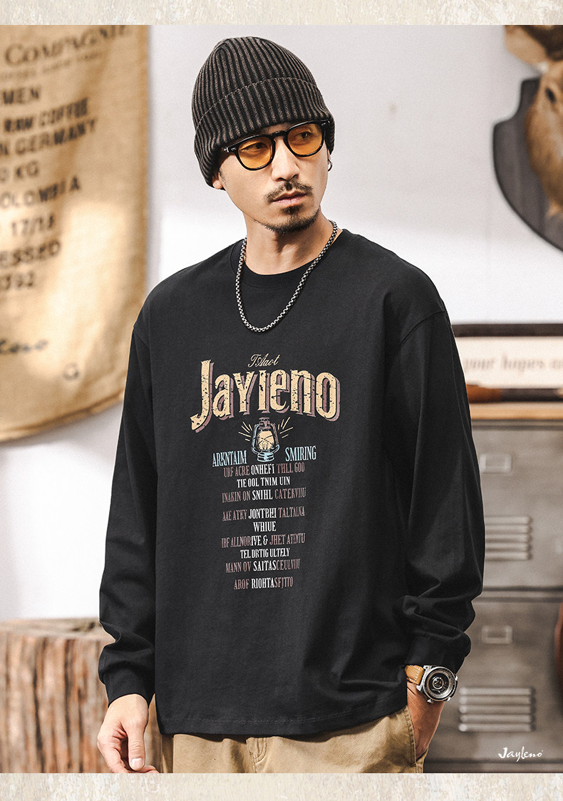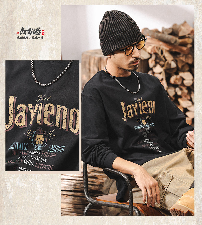 杰雷诺 Хлопковый мужской ретро весенний лонгслив, в американском стиле, оверсайз