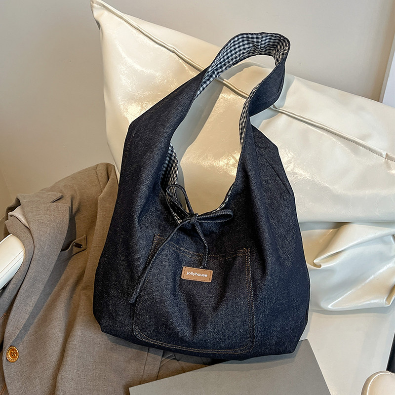 Джинсовая вместительная и большая сумка через плечо, весенняя сумка на одно плечо для отдыха