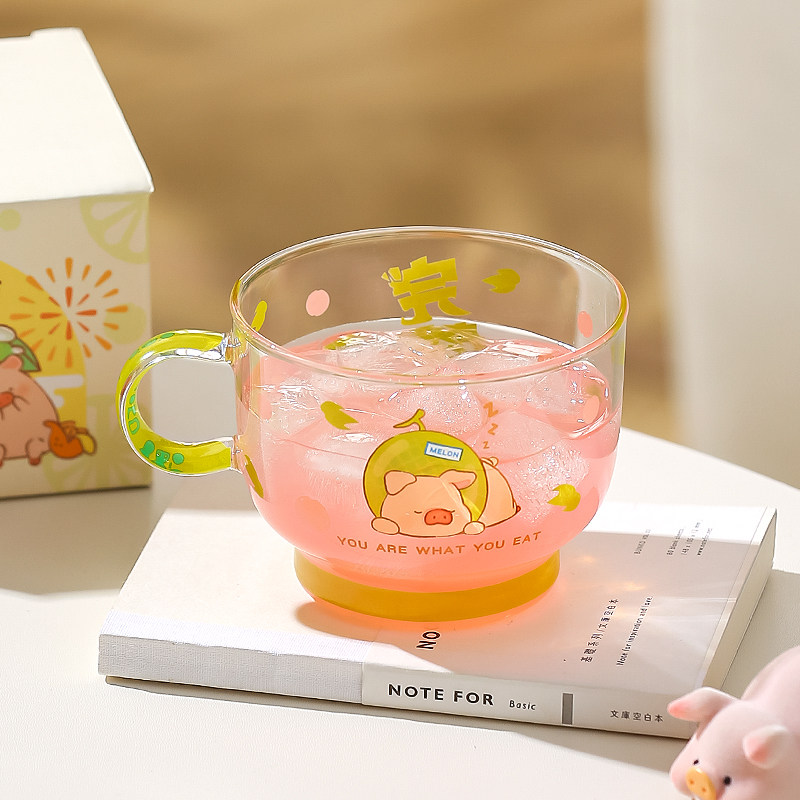 Стеклянная чашка Kawashimaya & lulu pig, красивая домашняя чашка для воды, чашка для молока, чашка для завтрака, милая стеклянная чашка