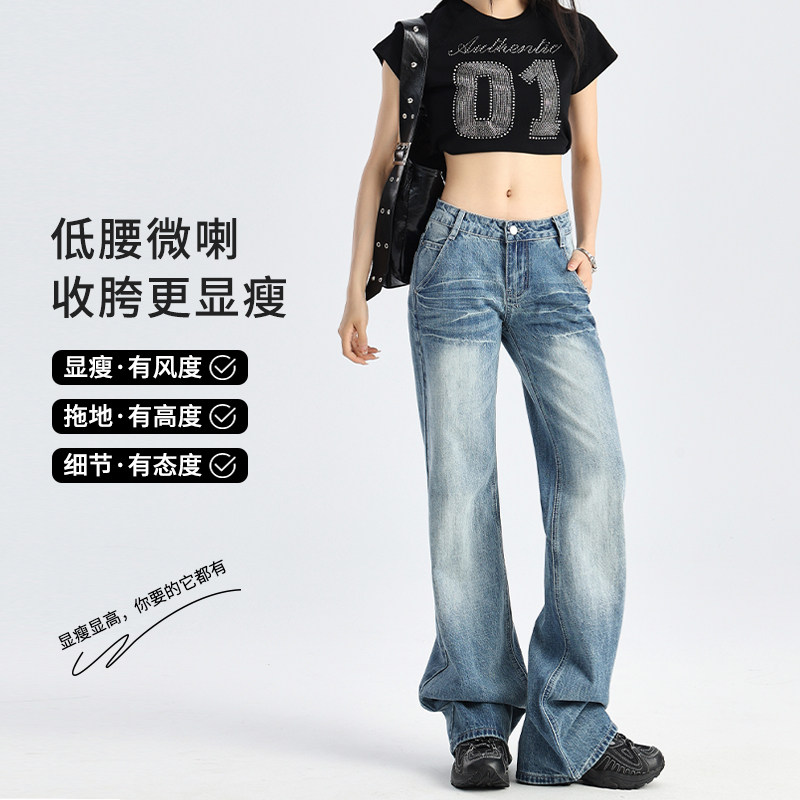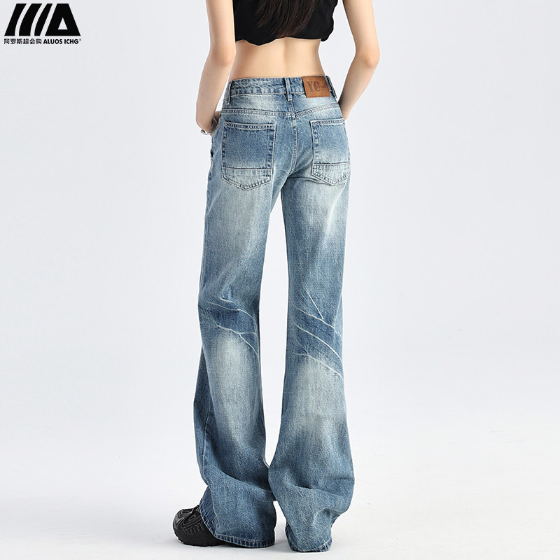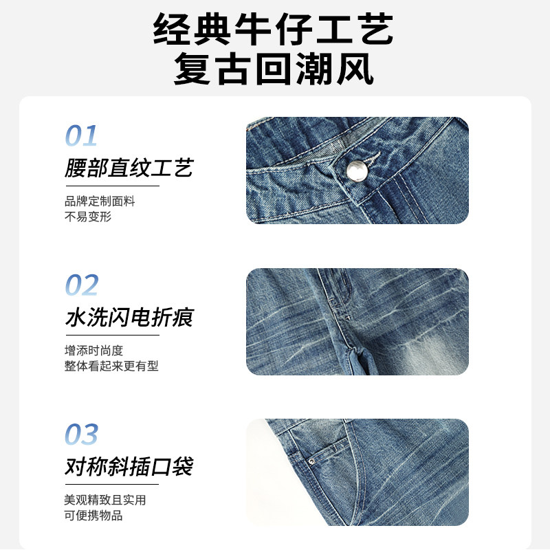 Ретро джинсы, осенние штаны, штаны-клёш, в американском стиле, свободный прямой крой