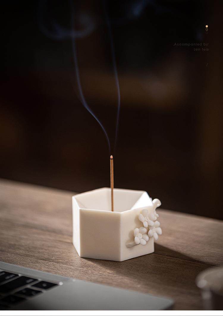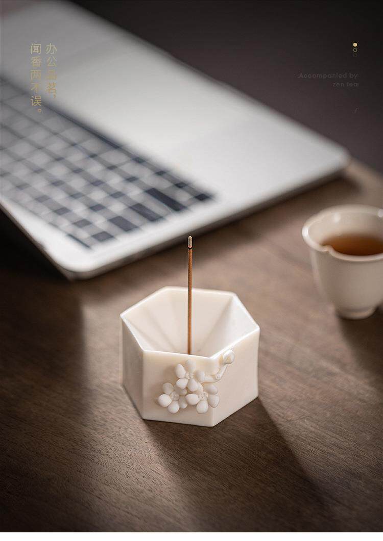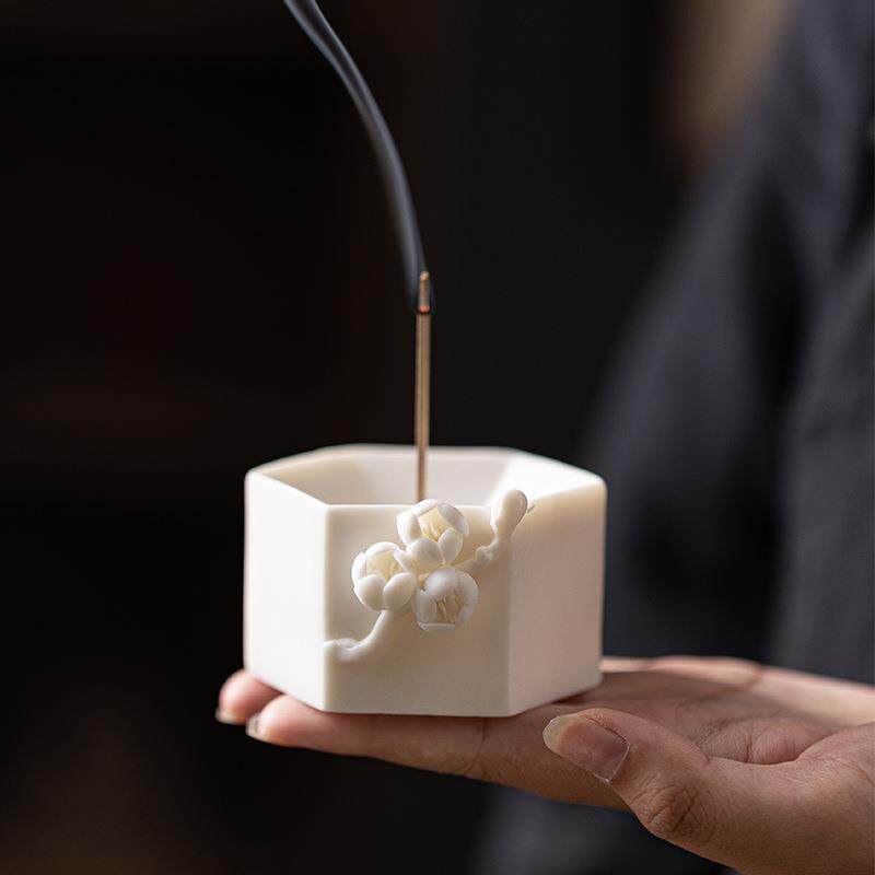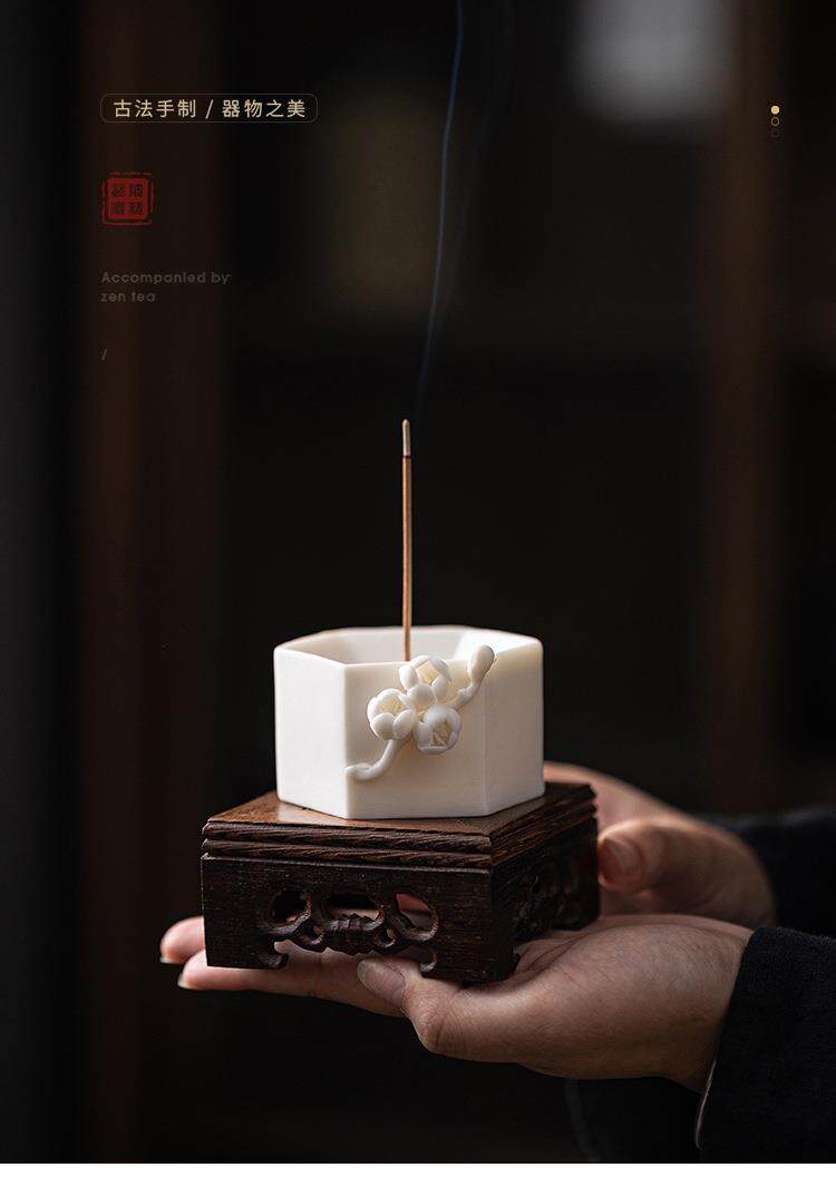 Творческая ручная ручная цветулка с благовонием для благовония Домашнее крыло японское белое фарфоровое чайное стол, ладан, ладан, сиденье вертикальное ладан