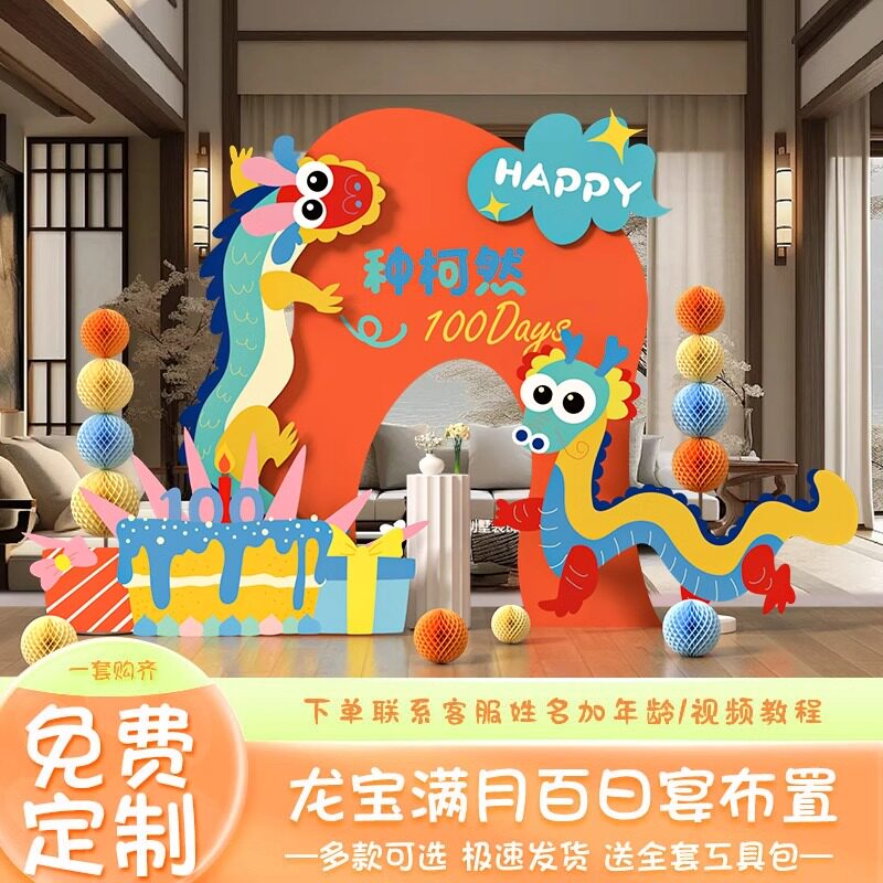 Дофаминовый дракон, украшение на 100-летие ребенка, фон для мальчика и девочки, реквизит для дня рождения, kt доска