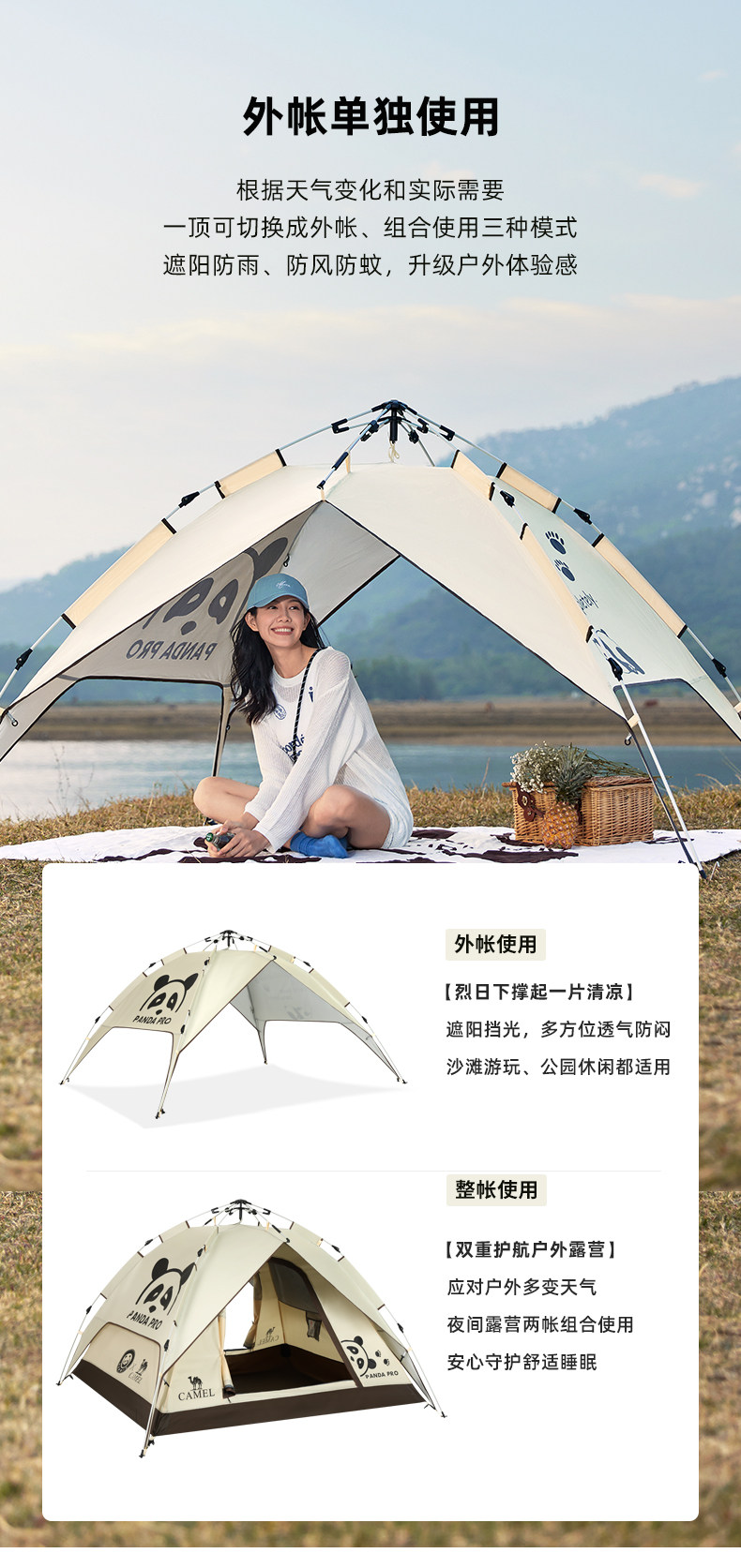 Милая дорожная палатка, детский вместительный и большой кемпер фургон, панда