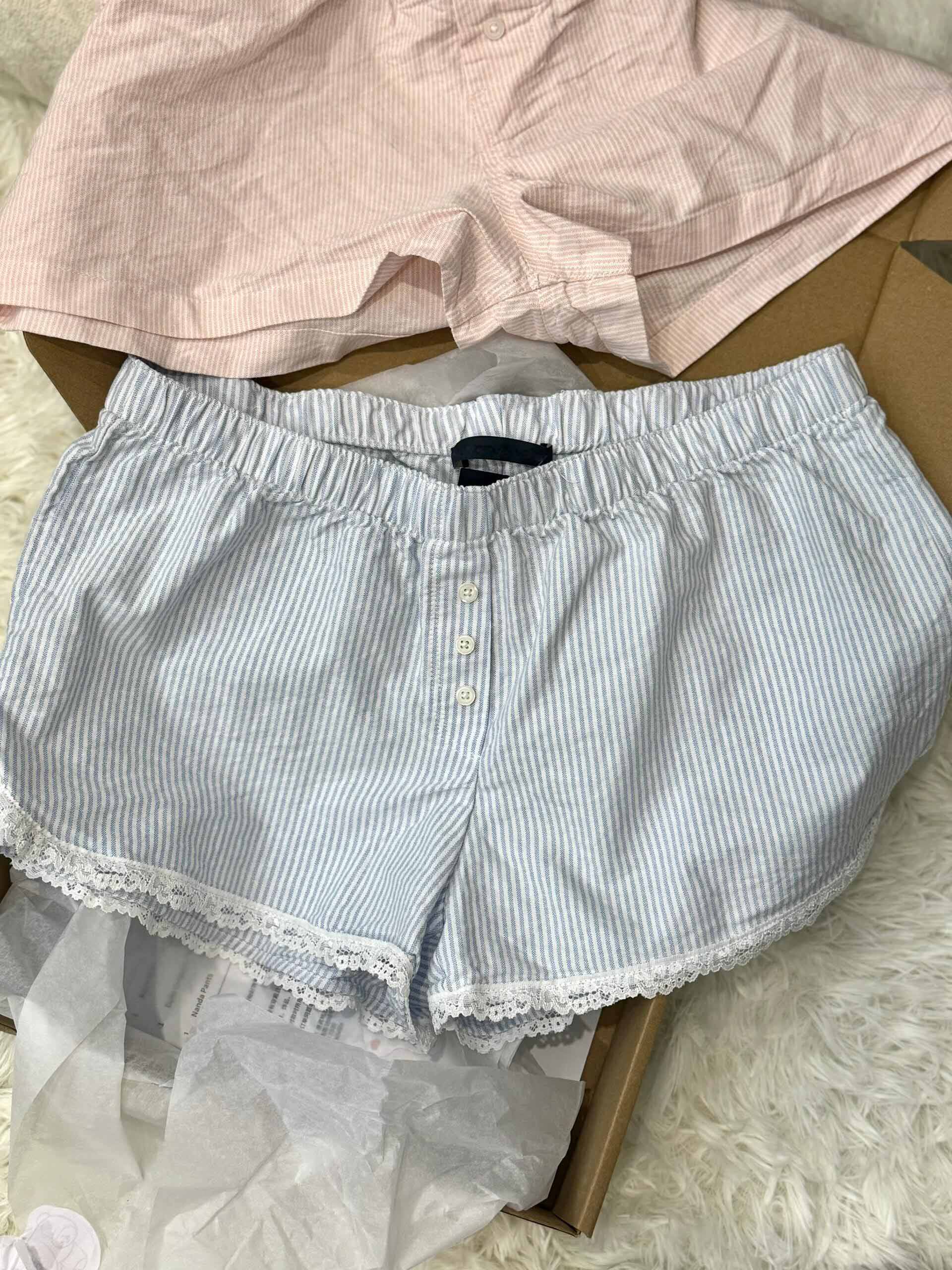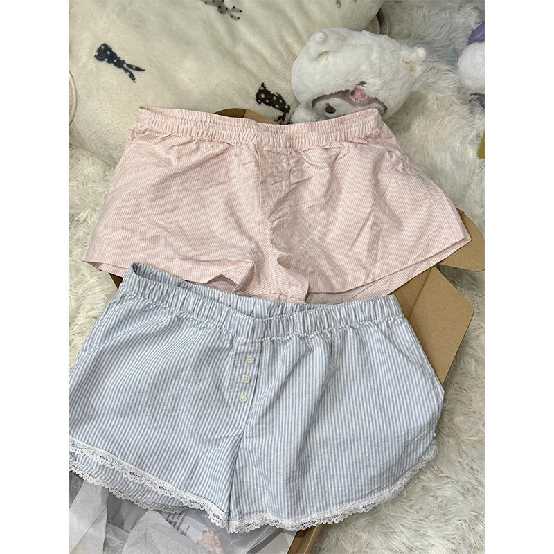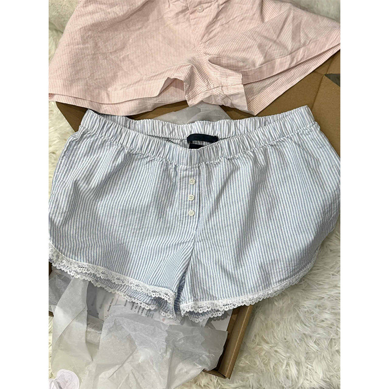 Кружевные шорты, синие штаны для отдыха, кружевное платье, высокая талия, свободный крой