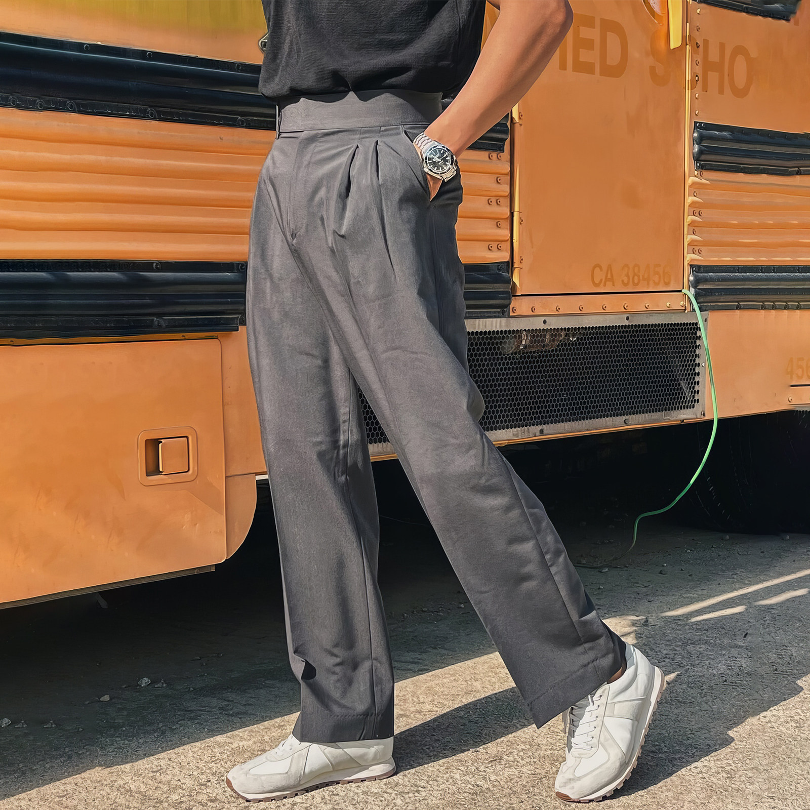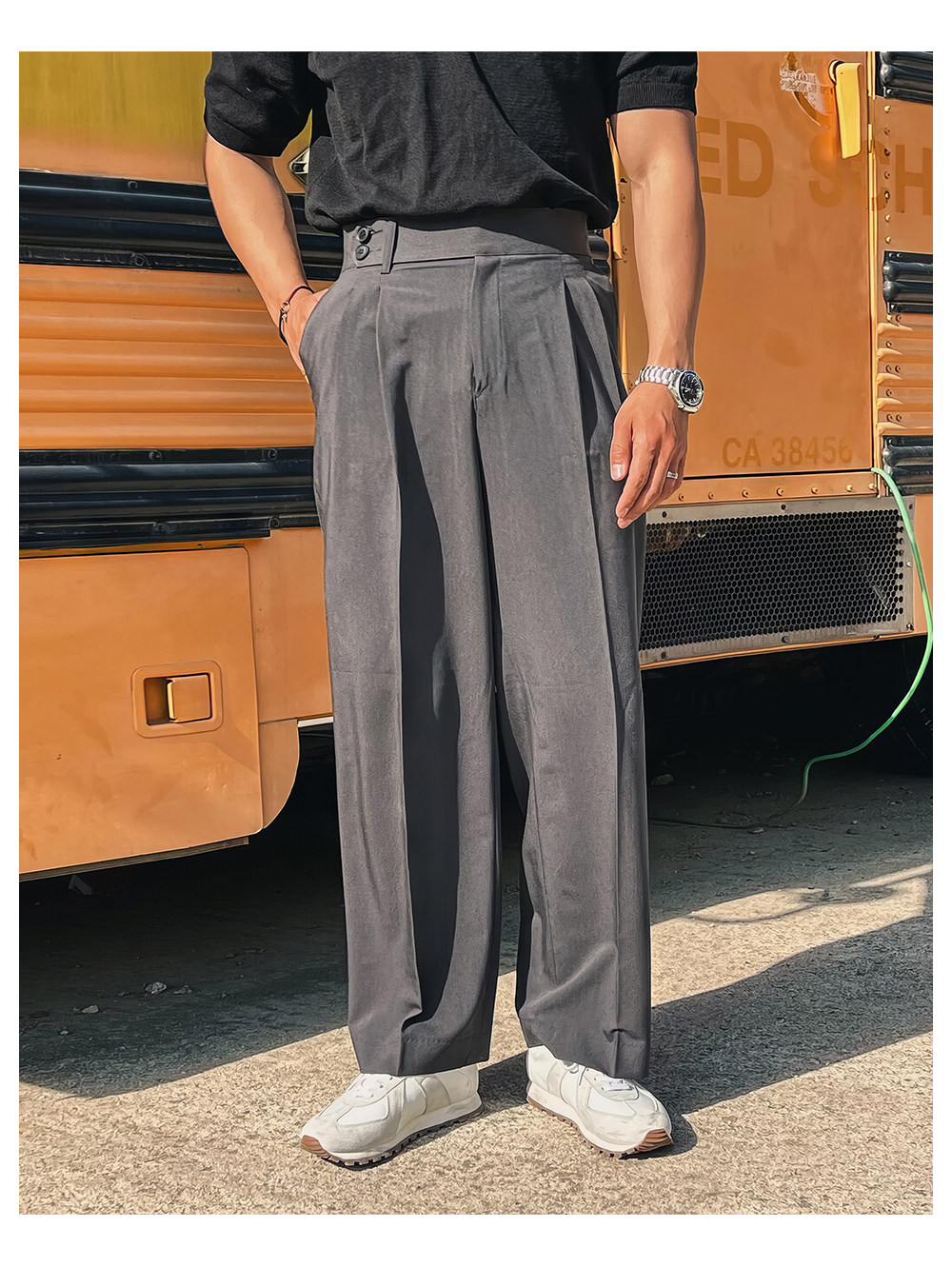 Мужские осенние штаны для отдыха, свободный прямой крой, высокая талия