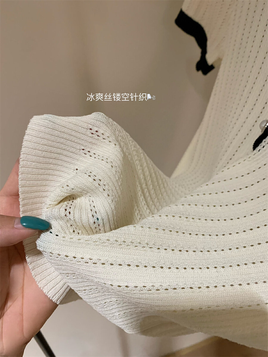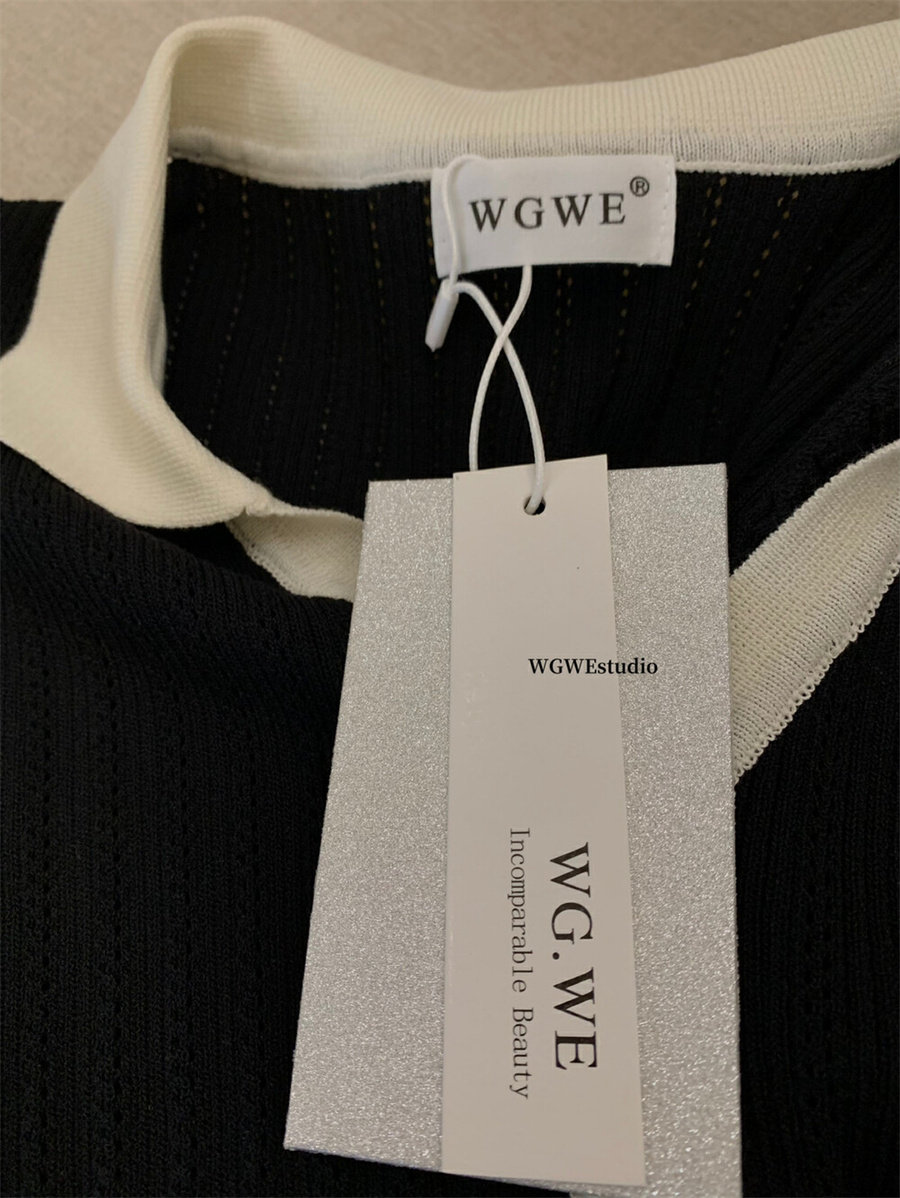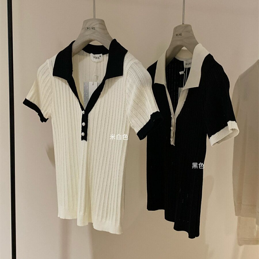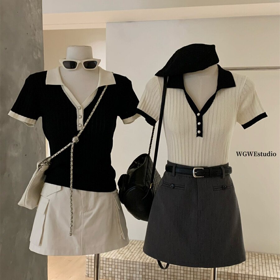 WGWE в студенческом стиле, тонкий свитер с короткими рукавами и контрастными лацканами на правом плече, женские весенне-летние миниатюрные топы 2025 года