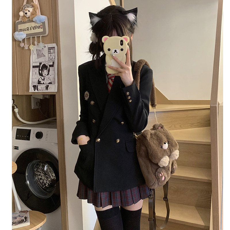 Оригинальная студенческая юбка в складку, приталенный костюм, корсет
