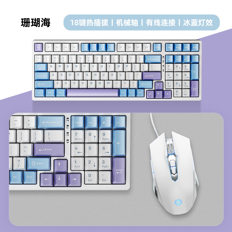 Набор механической клавиатуры и мыши HP для киберспортивных игр, специальный проводной колпачок для клавиш с гравировкой по бокам, зеленый чай, красная ось, для мужчин и женщин, настольный офис