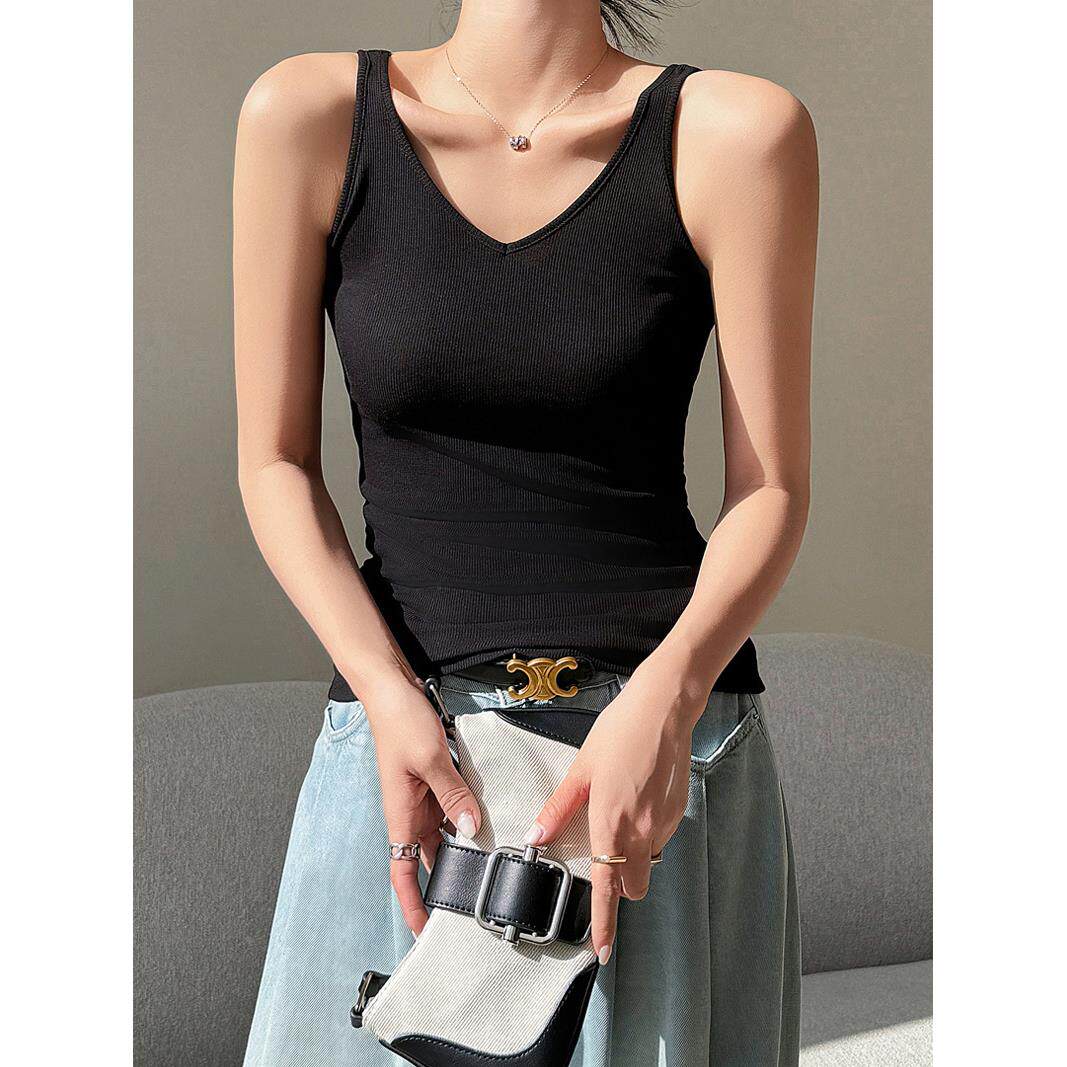 Летний костюм, трикотажная осенняя базовая майка топ, V-образный вырез, большой размер
