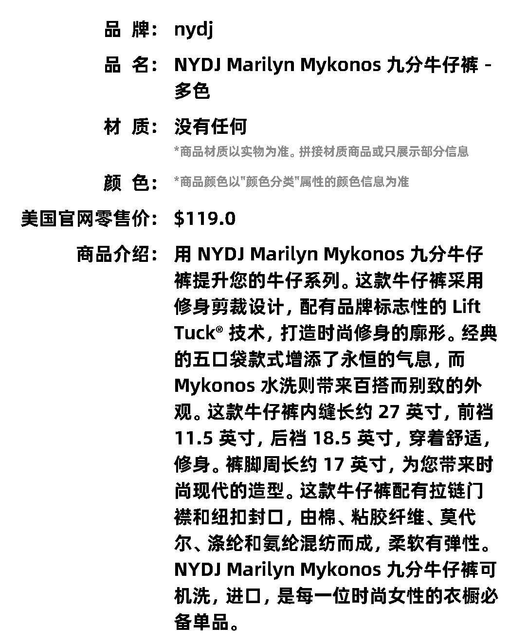Укороченные джинсы NYDJ Marilyn Mykonos NYDJ — разноцветные прямые волосы американского выхода
