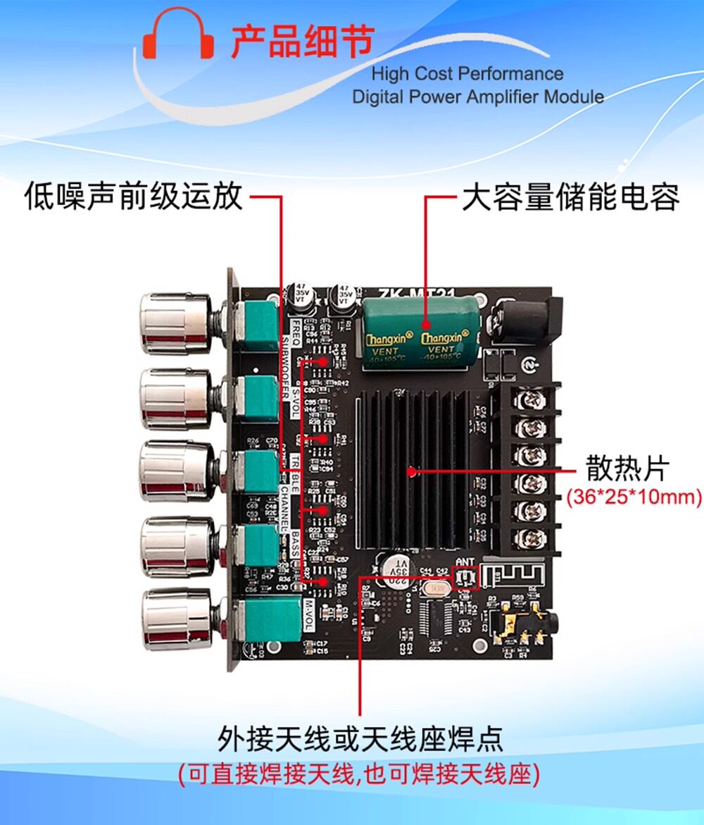 | Цвет: | ZK-MT21 2.1 Channel Bluetooth 5.0 Цифровой модуль усилителя |