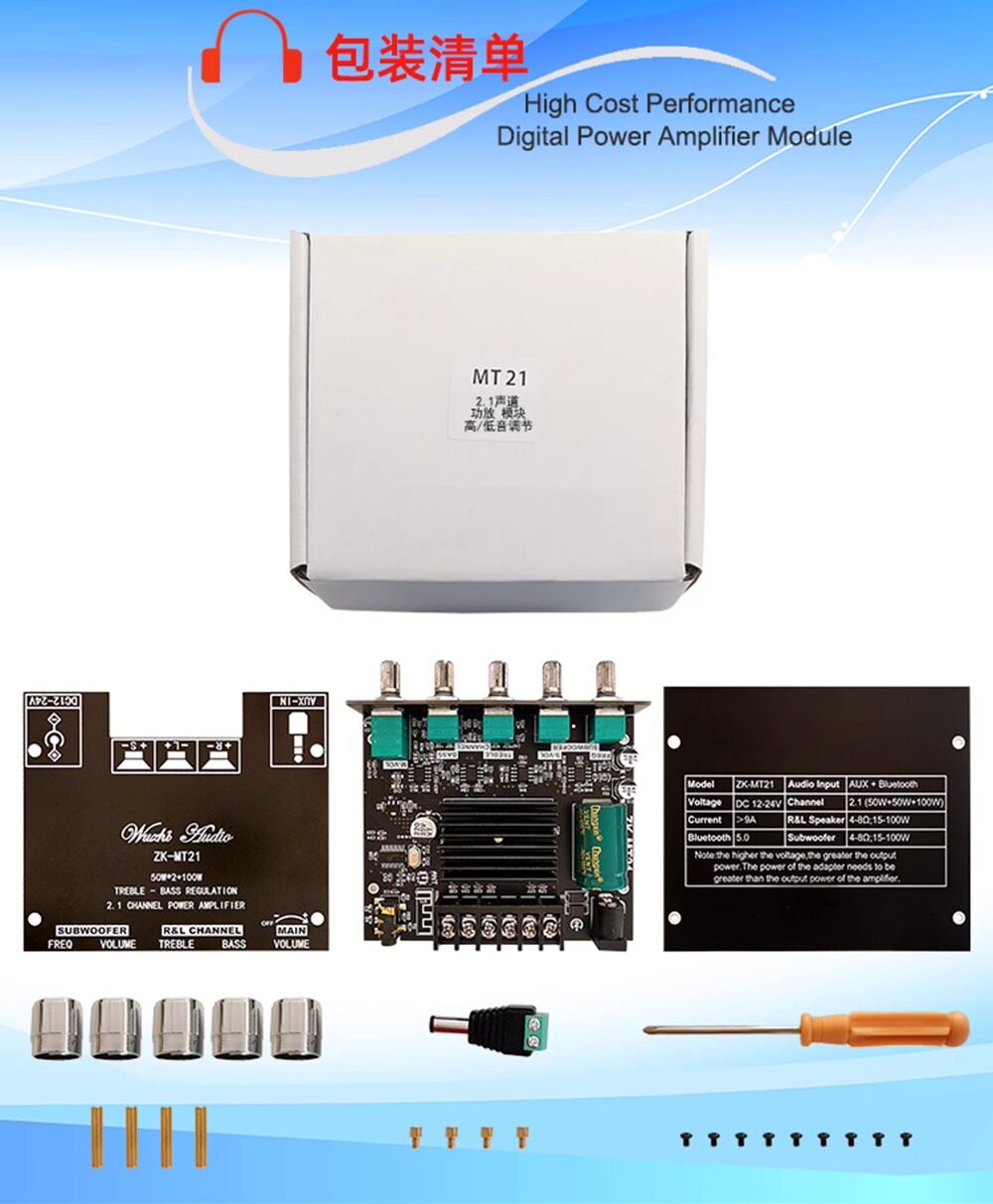 MT21 2.1 Channel Bluetooth 5.0 Цифровой модуль усилителя 1 Установите 3 части 100 Вт+2*50 Вт.
